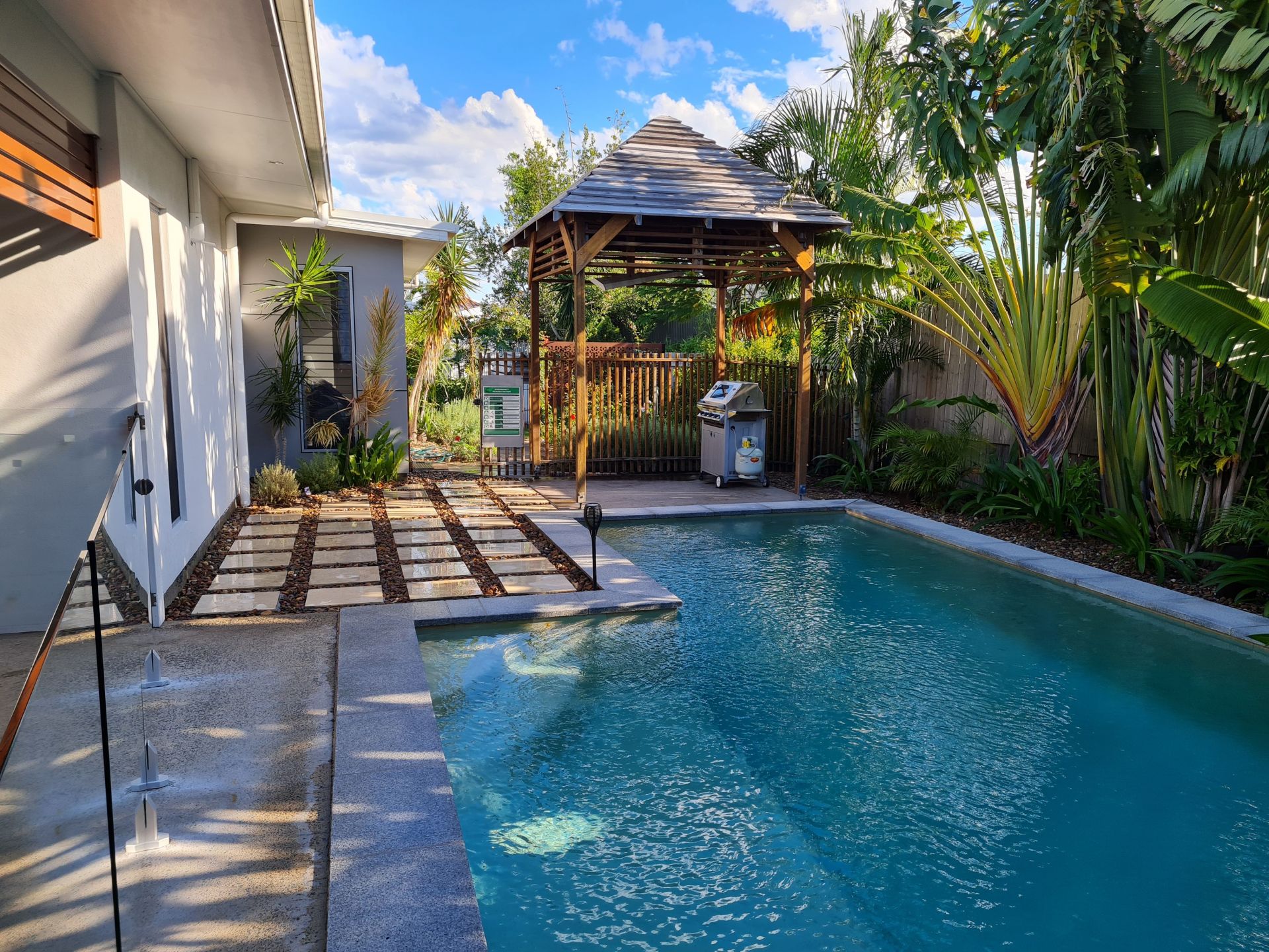 • Sparkling pebbecrete pool with granite copping