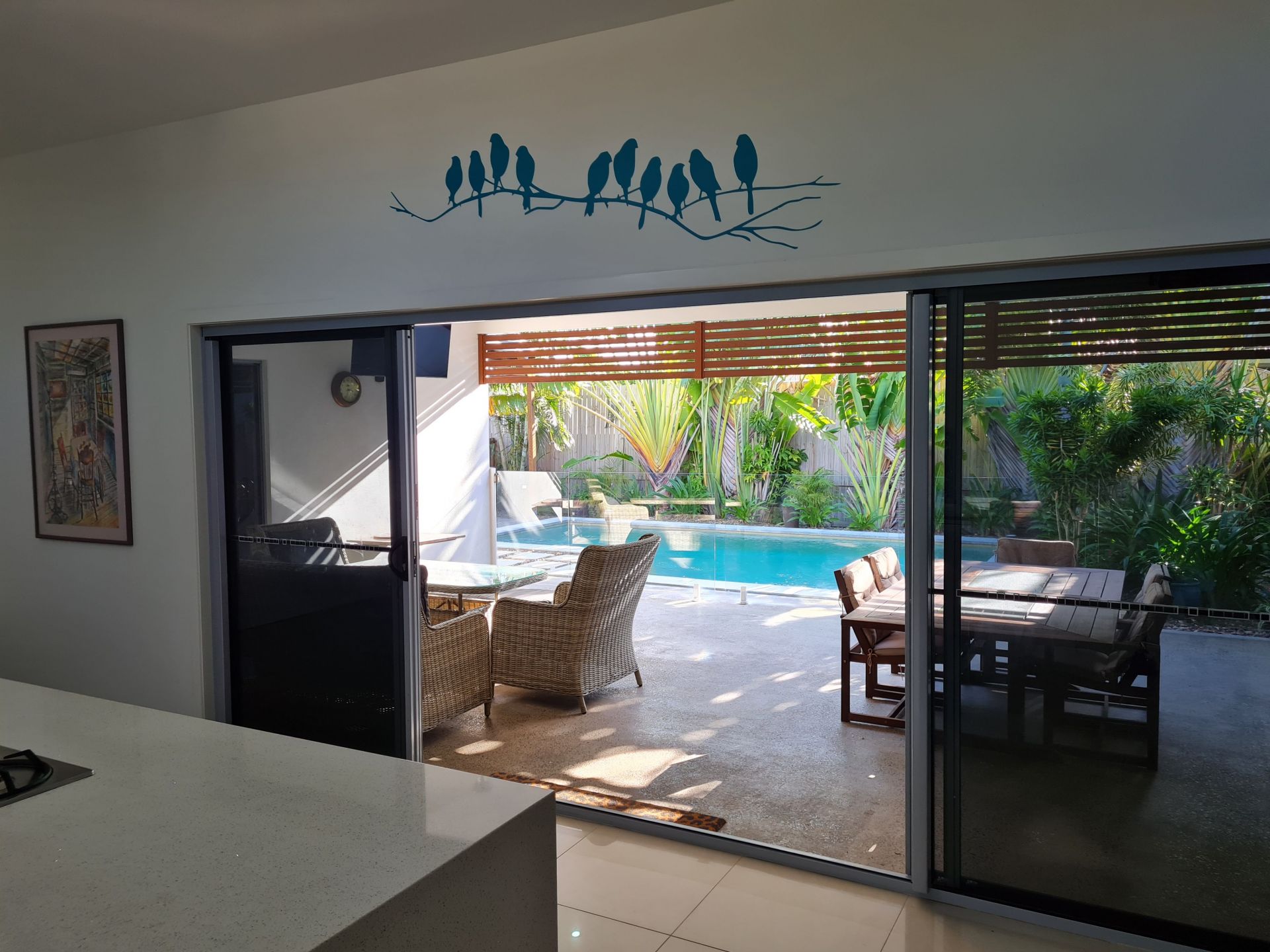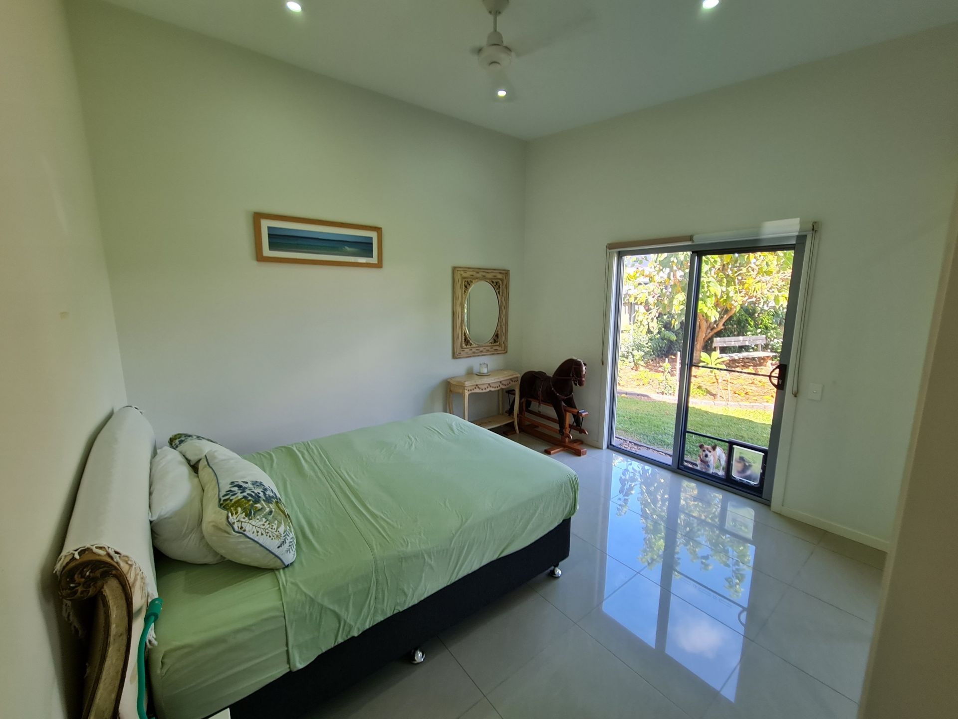 • Large tiled living area with dual sliding doors that takes you out onto a spacious undercover entertaining area