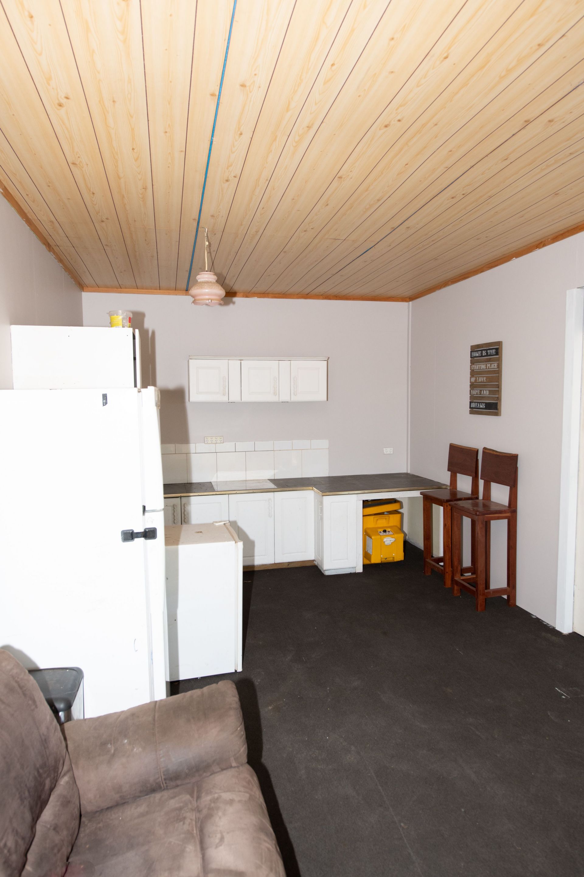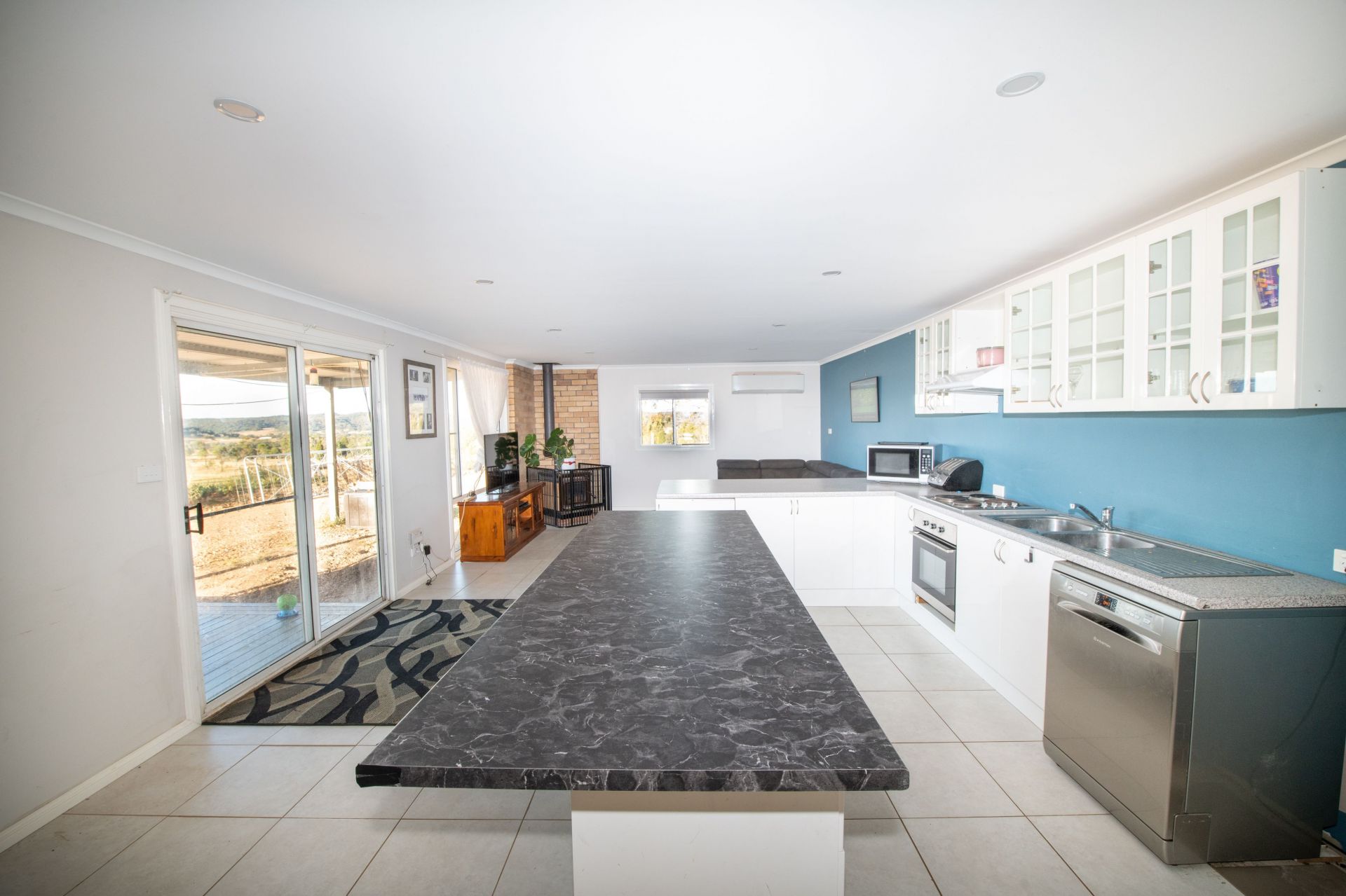 Open living kitchen with aircon unit