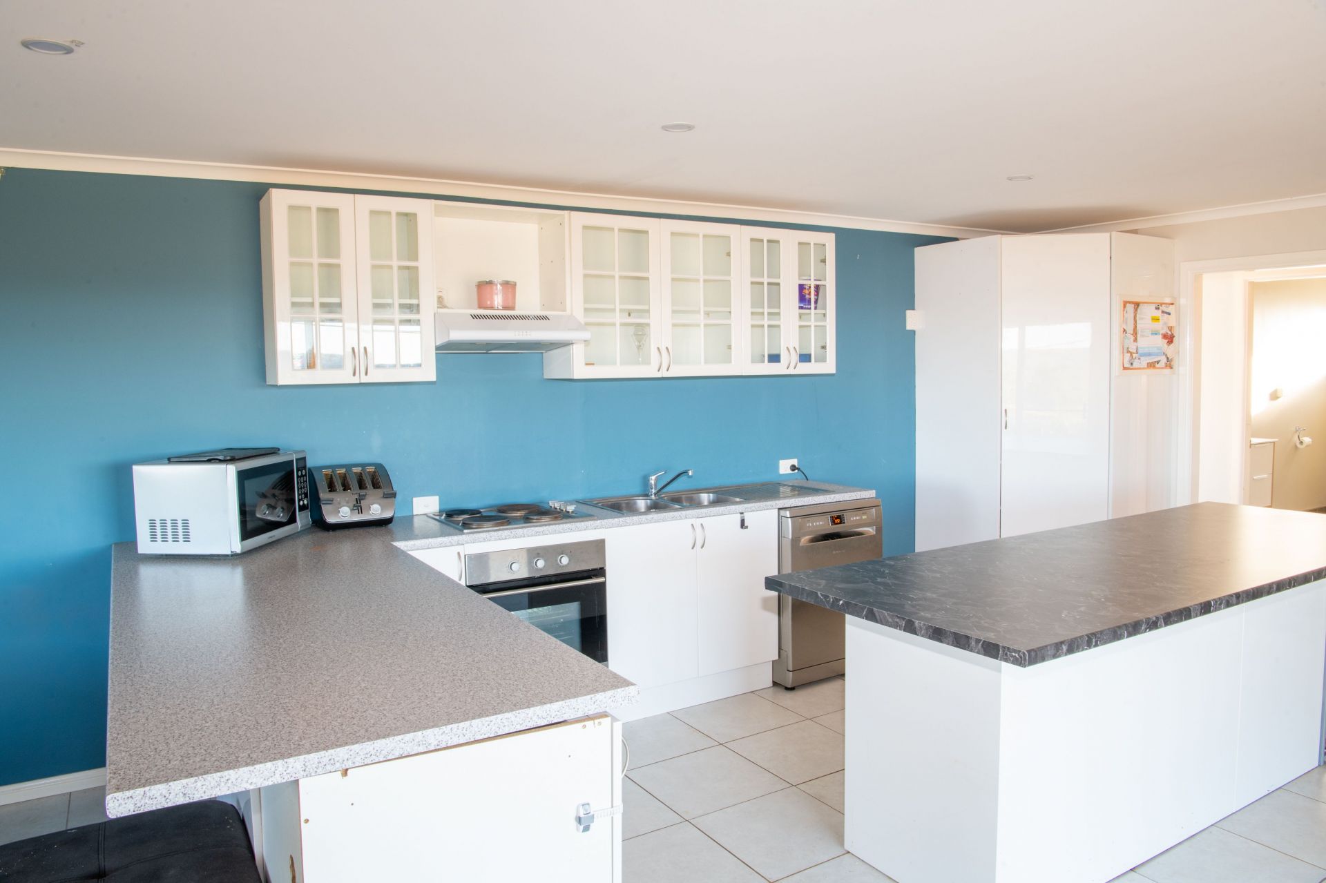 Fully functional kitchen with dishwasher large pantry and large island storage/ breakfast bench.