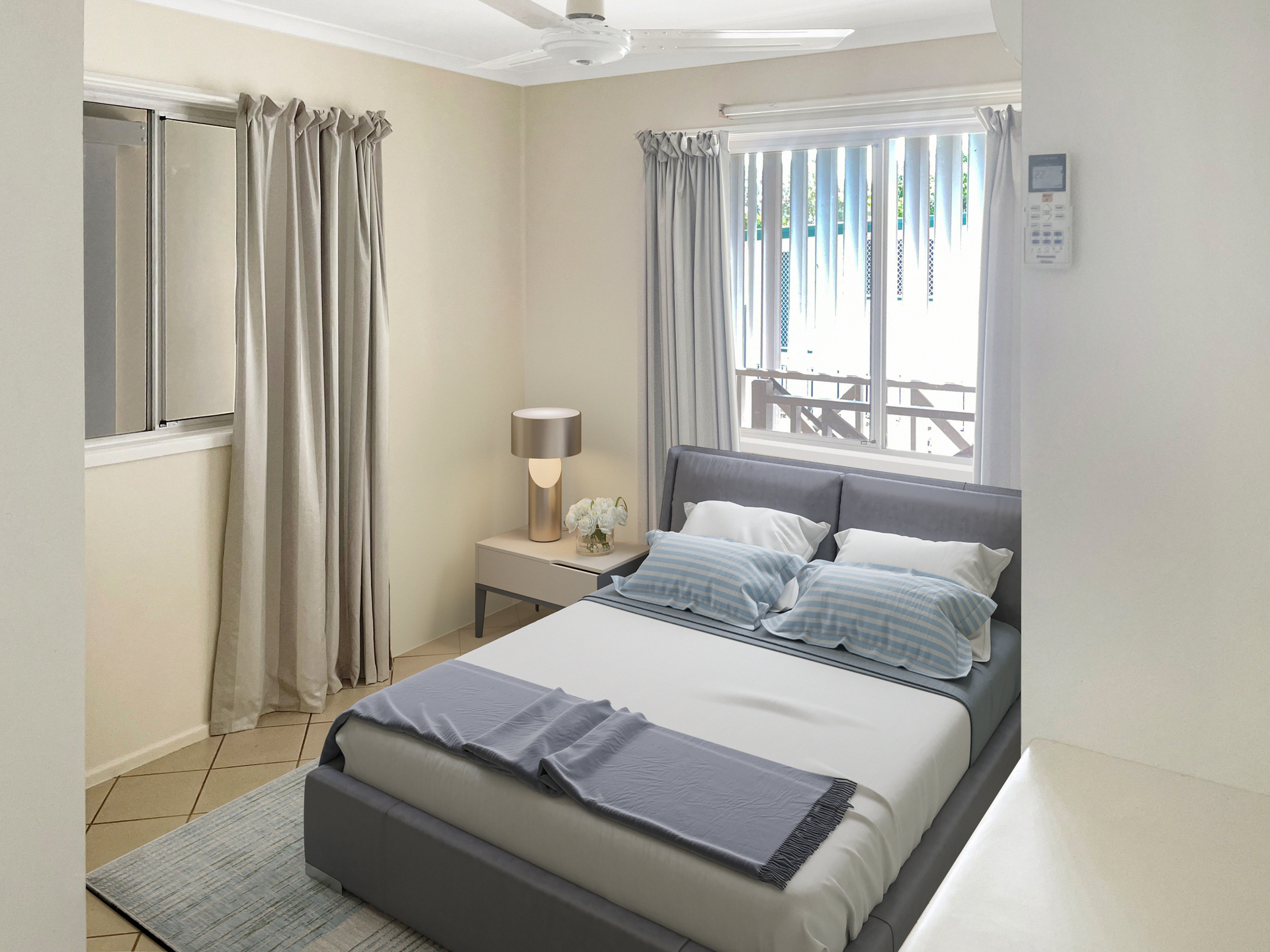 The two generous sized, tiled, side verandahs have ocean views and are sheltered by shade awnings on both sides, previously utilised as artist retreat and a sewing nook.
