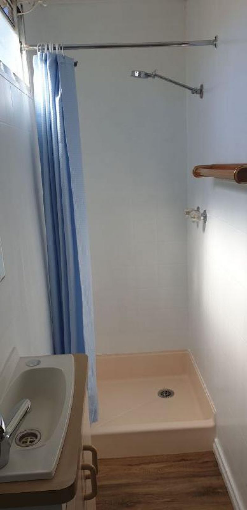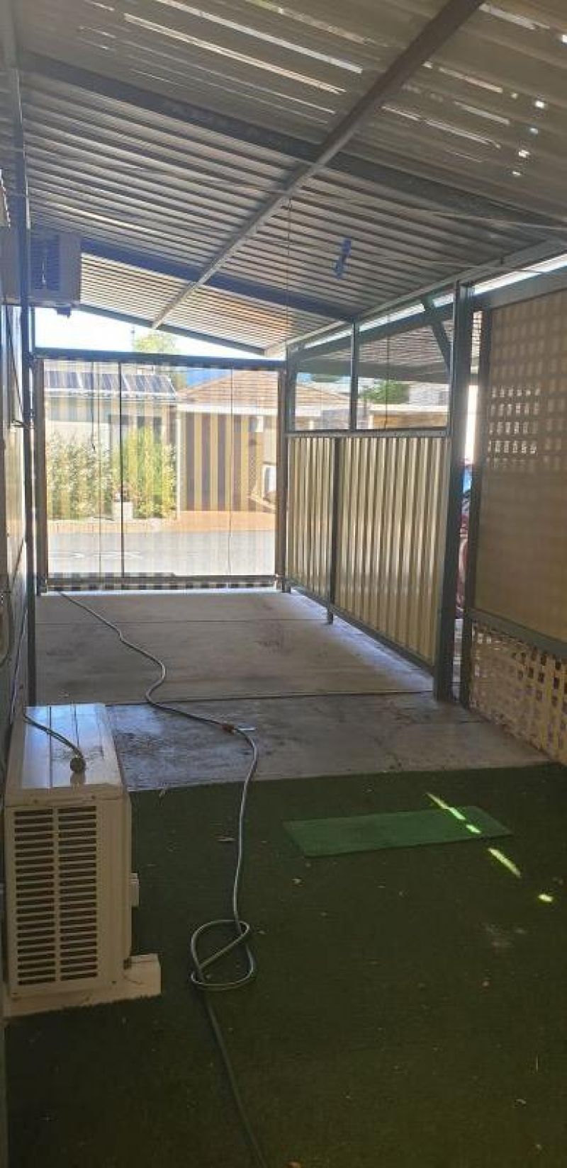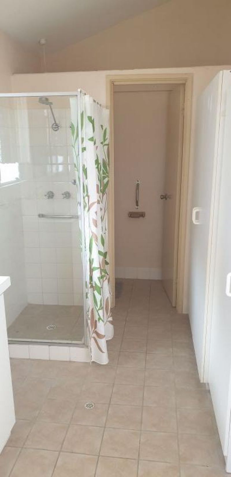 There is a second bathroom/ablution block outside, plus a good-sized shed, offering even more storage space, as well as a very neat and spacious outdoor alfresco area.