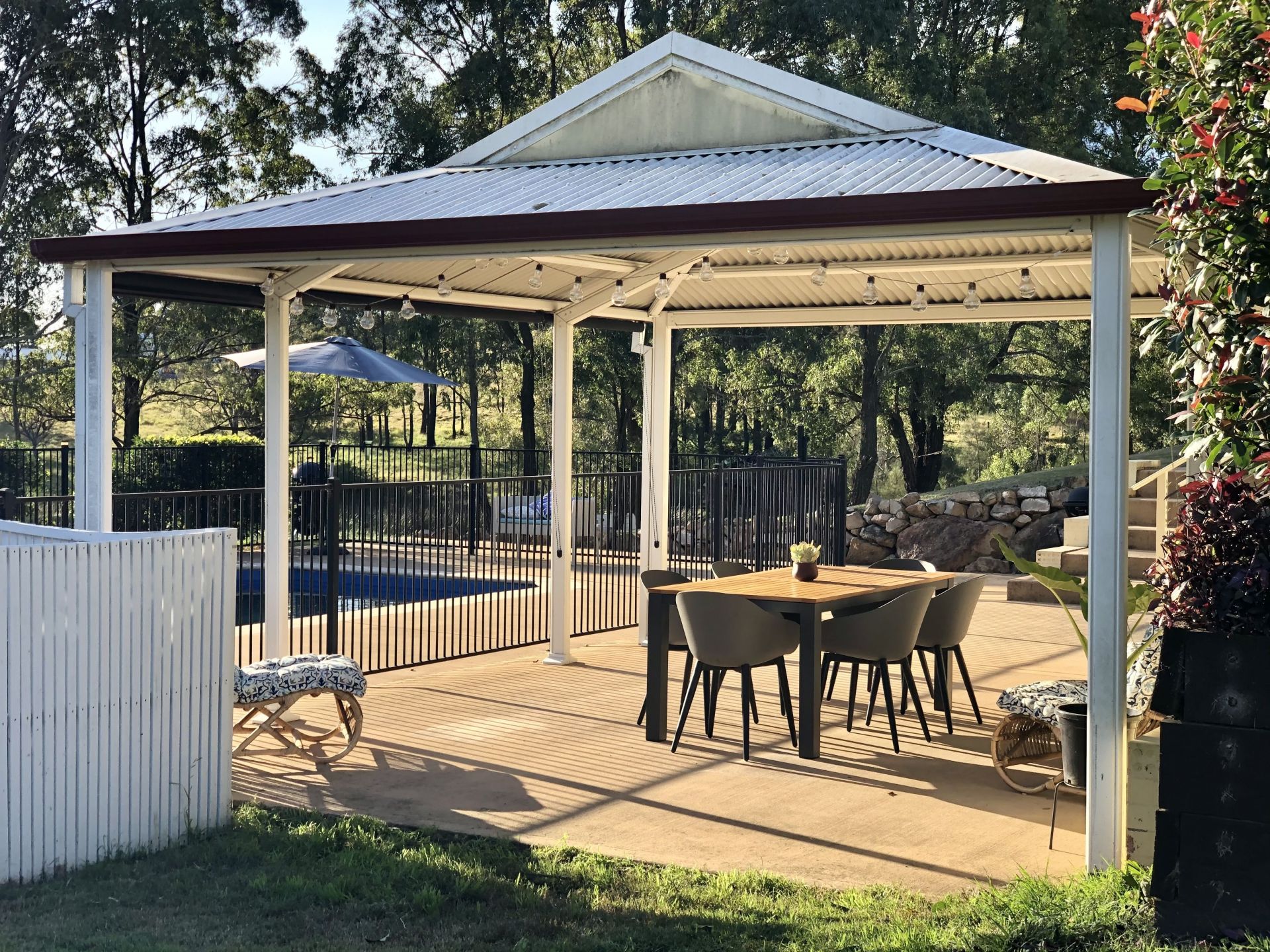 This immaculate property tucked away in a private county setting makes a lasting impression. This sprawling 4 bedroom, 2.5 bathroom abounds in this slice of paradise, where seamless indoor/outdoor living gives year round enjoyment to the wonders of nature. Sitting proudly on 1.8 hectares (4.5 acres), this striking steel-frame brick home provides glistening contrast against the greens and browns of the surrounding bushland. The wrap around verandah creates the perfect place to sit back and soak in the surroundings. It overlooks the sparkling crystalline pool and out across the paddocks and as far as the mature gums trees that scatter along the border of the property.