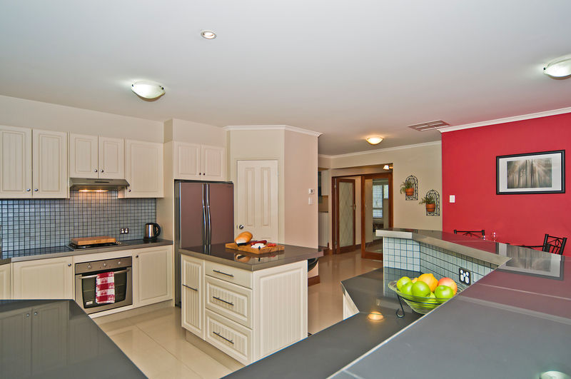 The heart of the home is the huge kitchen with gloss black porcelain and stainless steel bench tops, stainless steel stove, cook top and double dish drawer dishwasher, and the kitchen island adding even more storage and bench area.