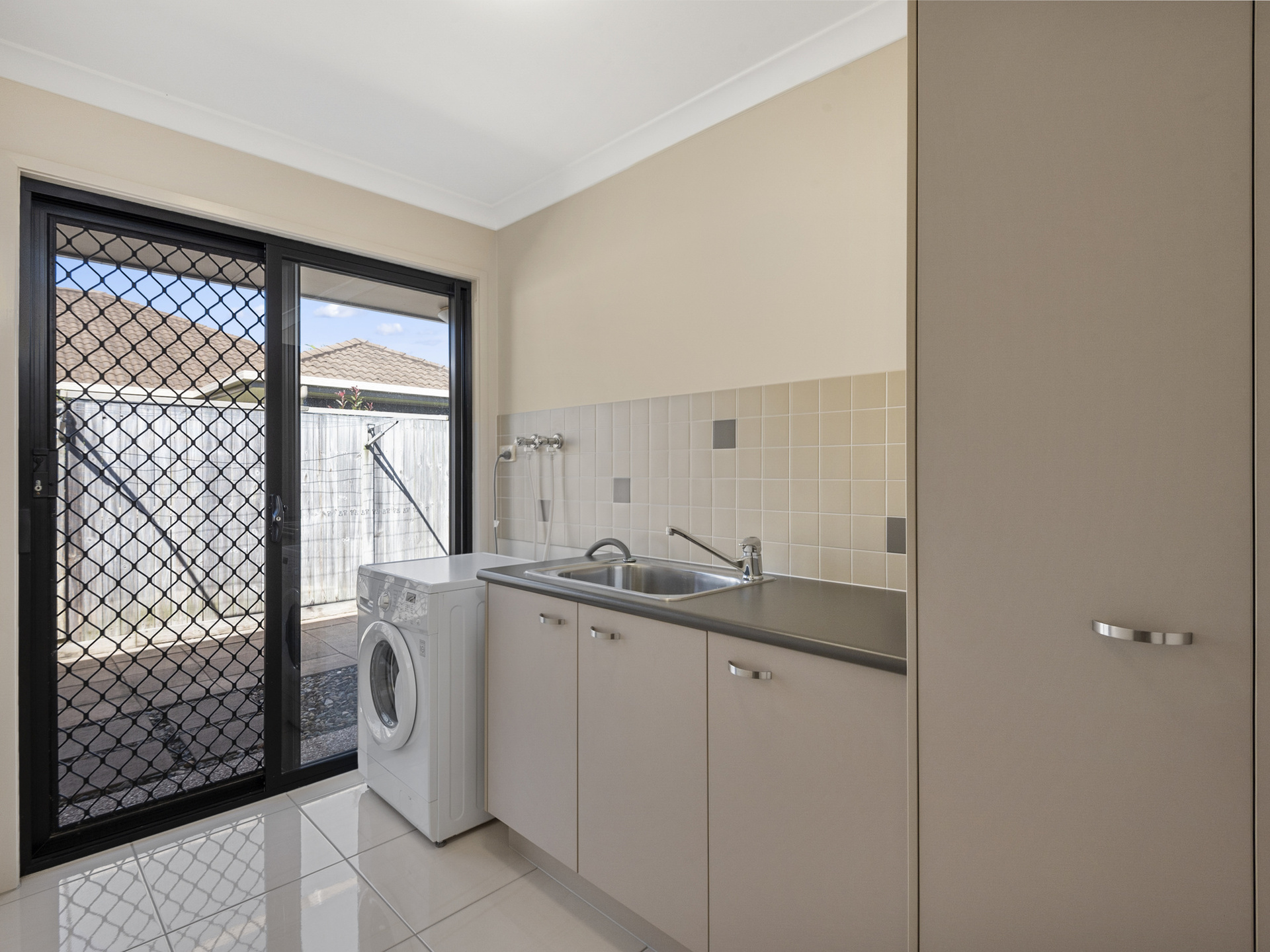 There is an extra 6m x 7m x 2.7m Colourbond shed at the back for storage or a workshop and a 4m x 7.4m shade shed to store a caravan or large boat. A 5000L water tank is plumbed to the toilets, laundry, and backyard tap.
