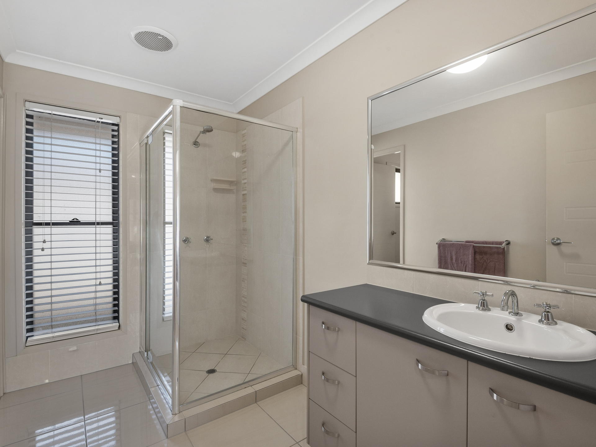 It is built on a 700 square metre block and is fully fenced with Colourbond fencing and powder coated aluminium slat gates. There are 4 bedrooms, 2 bathrooms, double garage with automatic door, open plan kitchen/family/dining, a separate media room and a good size outdoor area.