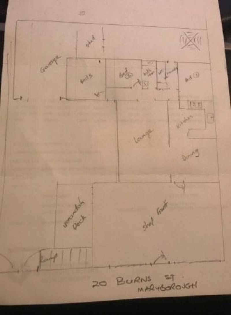 weather board 3 bedroom house, with potential to convert shop front into other rooms, large enough for second living room bedroom and bathroom, or similar.