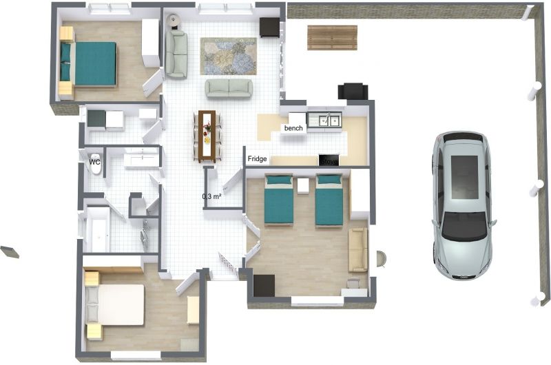 There are 2 double bedrooms and another large room currently used as a teenagers retreat with study nook and entertainment unit and sofa. Or perhaps Mum and Dad could use this one to get away from it all.