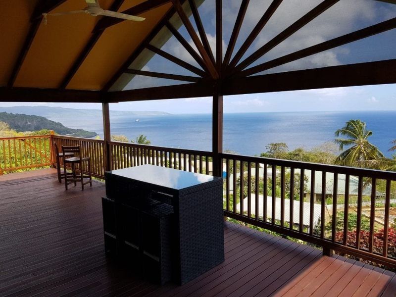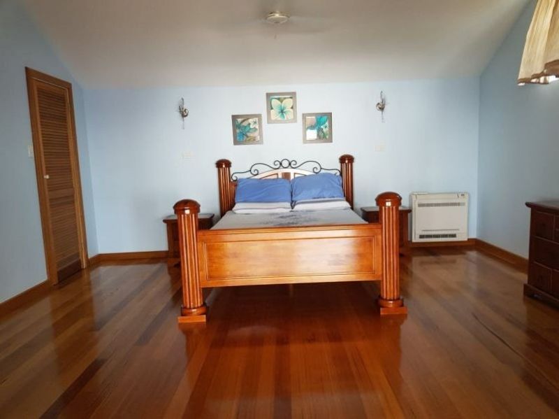 Upstairs has a sizeable entertainment area behind double glass sliding doors opening onto a huge decked area for outdoor entertaining, with the ability to bask in the gorgeous panoramic views of the ocean over Tai Jin house to the horizon of North West Point. Upstairs also has an adult retreat with air conditioned master bedroom, walk in robe and ensuite. Double french doors open onto the deck showing off the beautiful blue ocean from your bed.