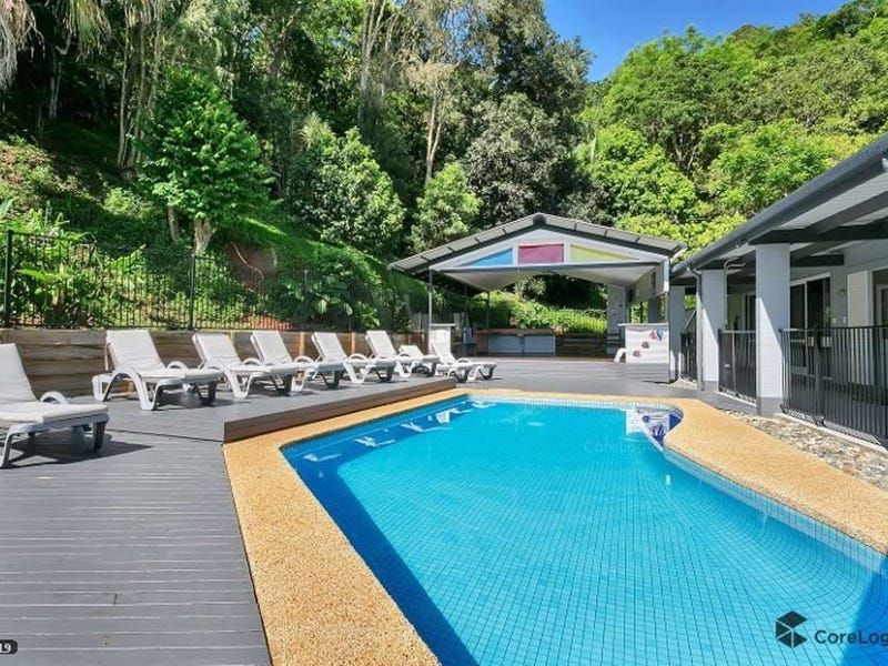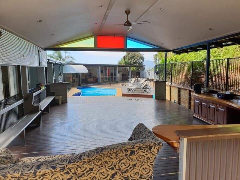 Nestled high into the Whitfield Ranges and overlooking Cairns City and Ocean, this 3-acre property is exquisitely unique. The private walking tracks meander to the top of the range and link up with the newly constructed "Green Arrow " Walk. There is an abundance of Tropical fruit trees and animals.