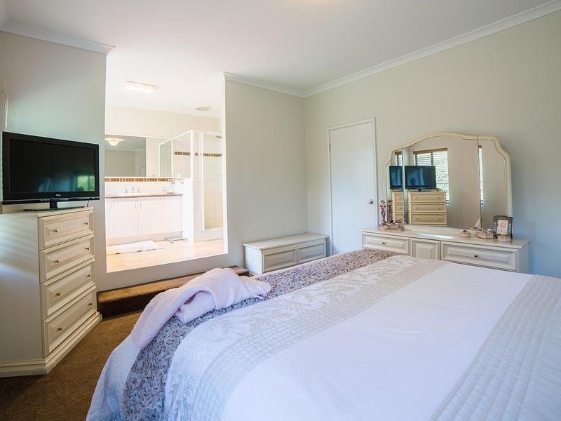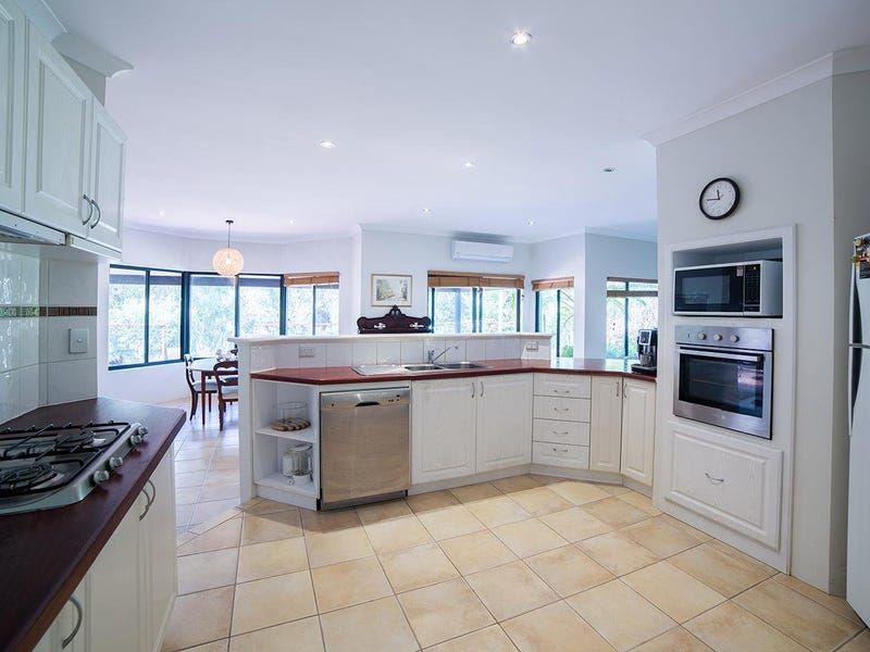 Sundowners, B.B.Q,s, celebrations, the clink of chilled glasses, all on your own fabulous Big deck overlooking the Margaret River Forest. Just an enjoyable stroll to town or the river along the famous Rails To Trails. What a gorgeous location in the Vintners Estate west of town.A big half acre of sunny tranquillity with easy care gardens brimming with birdsong. Beautifully presented this 4 x2 home sits high on the block with views never to be built out. The 4 bedrooms are generous size with robes.The master has wir, ensuite and separate w.c. You won't feel boxed in as the kitchen, family, dining all look across the deck to the forest.Warmed by a cosy wood fire or flick the remote for R/C air con.Dine and relax inside or out watching the sunset. The big study or theatre room has. french doors for privacy With the advantage of design this lovely residence could be a super B and B or build a separate studio and reap the rewards of this beautiful area.You won't find a nicer location than this ready for a big family and or additional business. Contact owner for an apt as this property is going to sell…