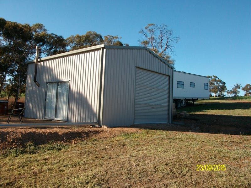 100 acres with approximately 65 arable acres. Secluded and undulating with great views. Areas of natural bush and granite outcrops. Fenced and all year round dam. 7m x 6m shed, with roller doors at each end and glass sliding access door. Arable acres currently leased, but access to shed area is available all year round.