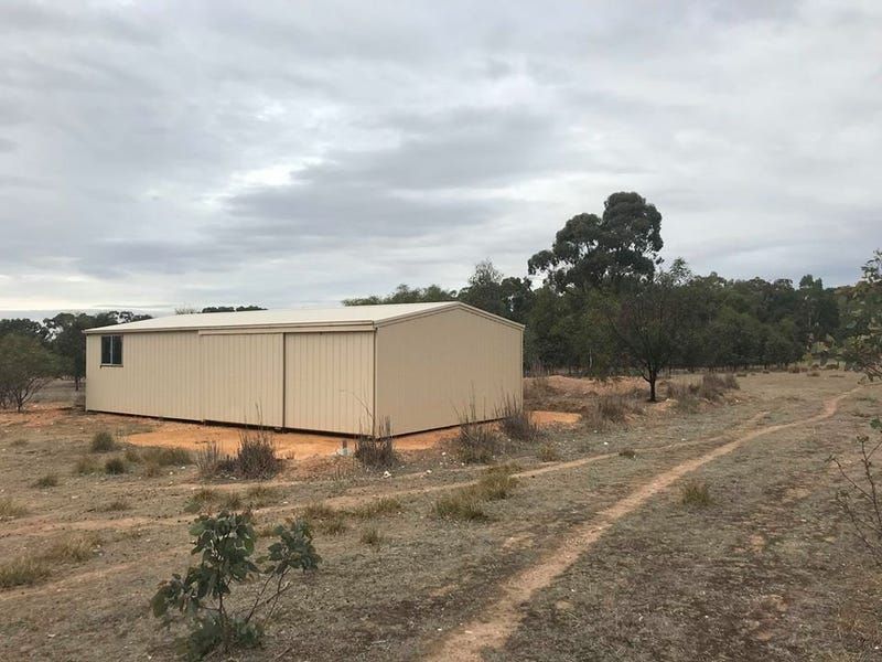Light industrial block with new colour bond shed 20 x 40. This piece of land is 2.595 hectares in size and is approximately 100 metres in width by 250 metres deep. It has a large dam at the front of the block.