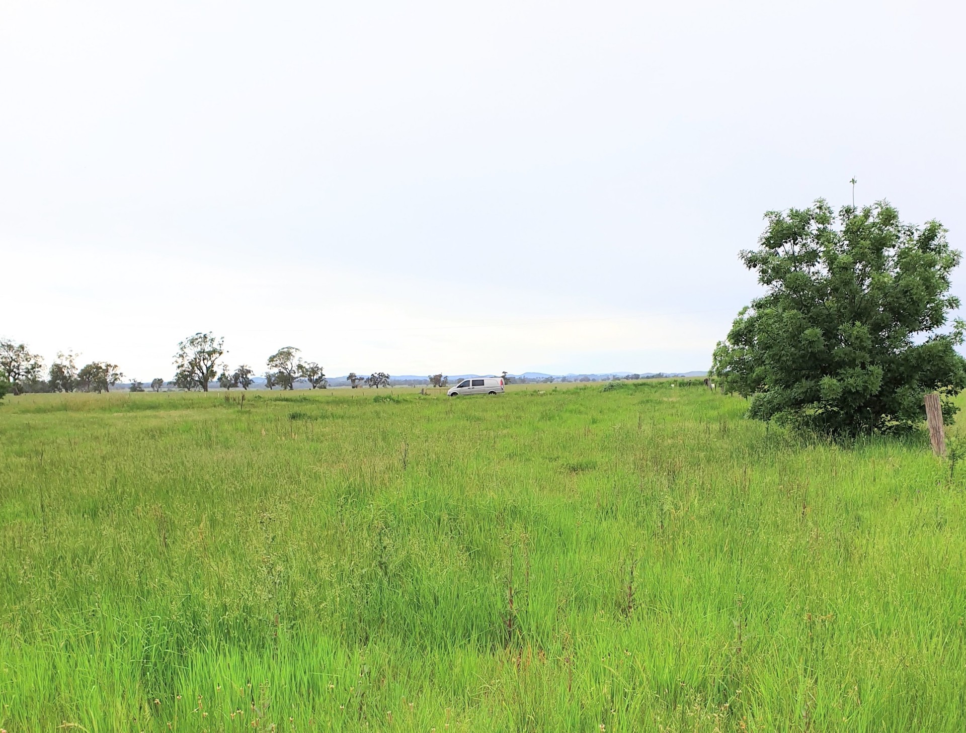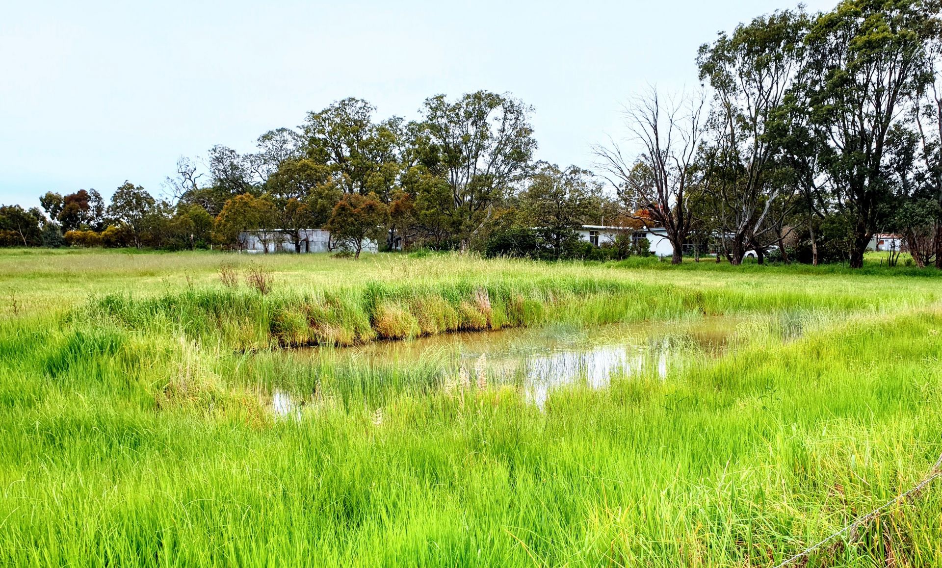 The block contains a dam and a breathtaking view of expansive fields, including Black Hill at Kyneton on the horizon.