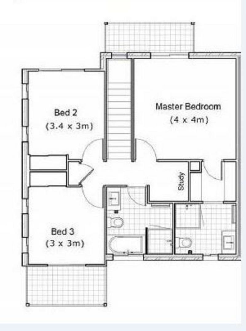 3 carpeted bedrooms upstairs with air-con and ceiling fans