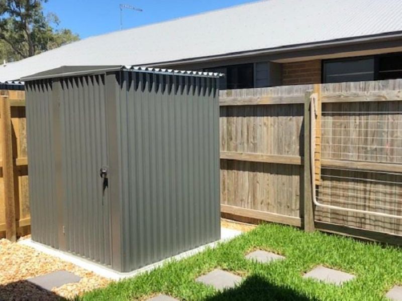 Garden shed, clothesline and letterbox