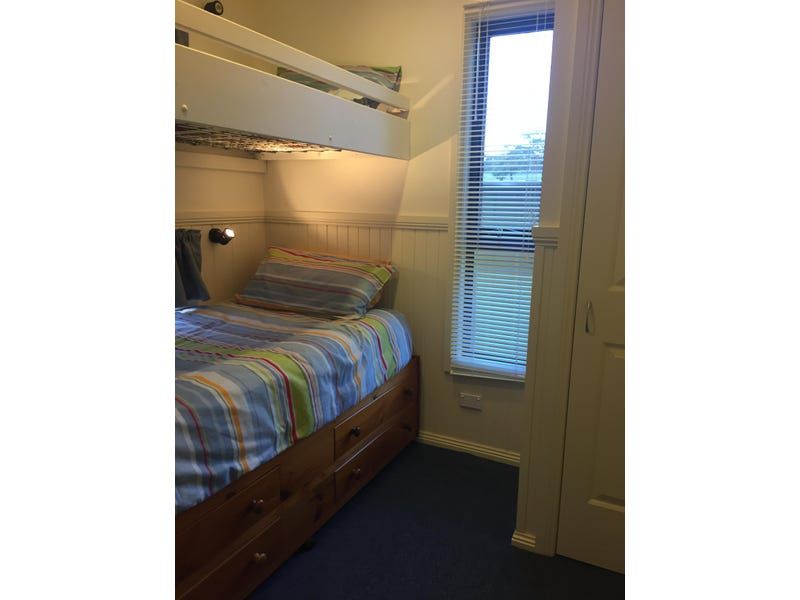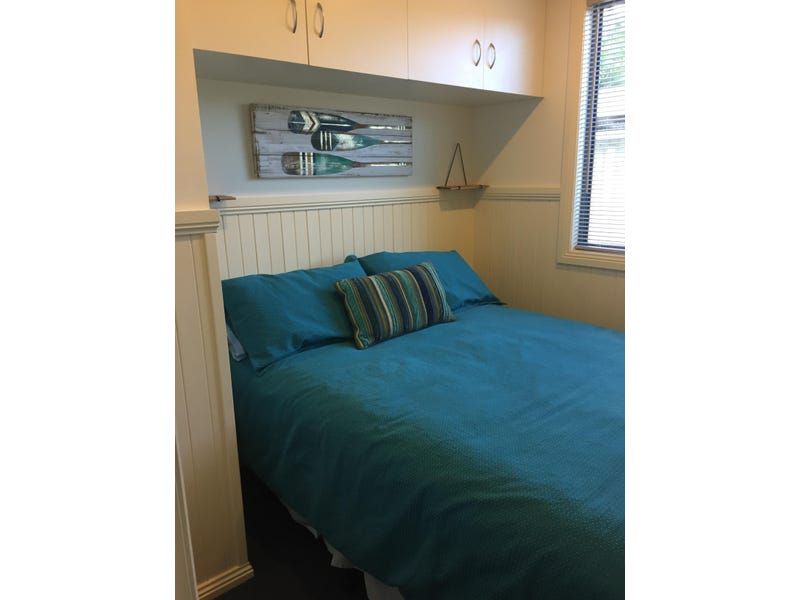 Open plan living space with flatscreen TV and dining table, kitchen with good sized fridge, oven and microwave, 1 double bedroom, two bedrooms with bunks and all with robes, bathroom with shower and toilet, reverse cycled air conditioner. Fan in the lving room and master bedroom.
