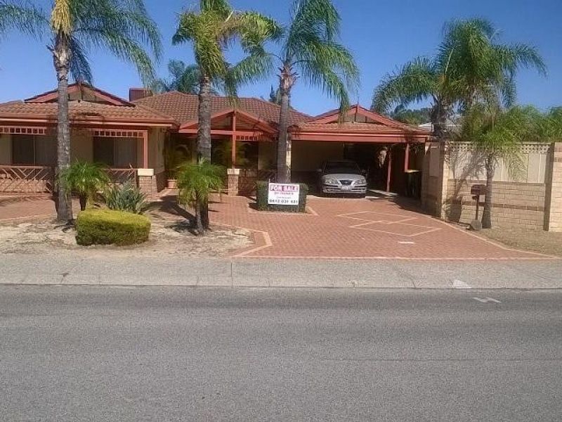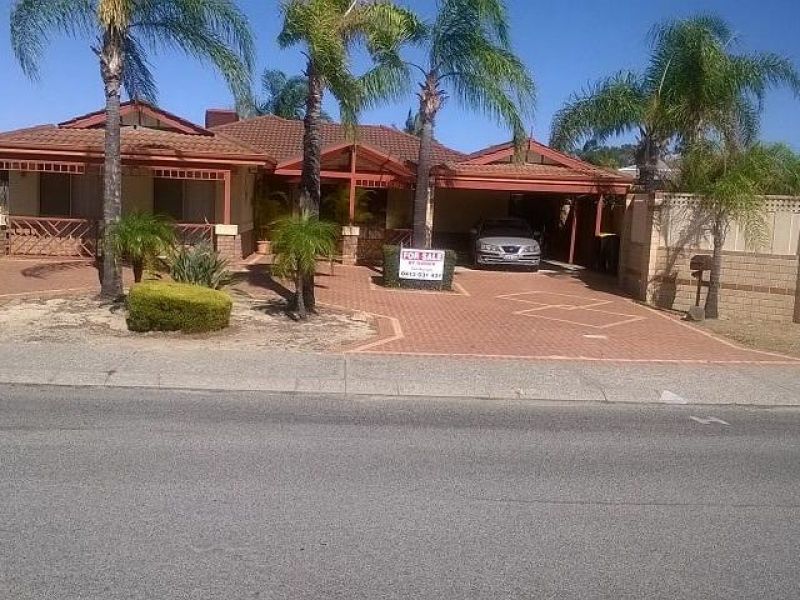 First time offered! URGENT SALE DUE TO DECLINING HEALTH! Dover Homes double brick and tile air conditioned 4 x 2 plus in the Lakes Estate Ballajura on huge block (792sqm) with impressive double street frontage and double carport UMR. Complete brick paved driveway with two entries from road verge to front door - no steps! Undercover portico to entrance. Huge main Bedroom (6560m x 4600m)with four mirror door BIRs and boutique Ensuite. Three single bedrooms all with BIR's. Tiled Entry, then through a feature brass inlaid glass panel door to same tiled Family Room and Kitchen. From tiled entry, one step down to the Formal Lounge then step up to Separate Dining Room separated from kitchen by another feature brass inlaid glass panel door. Feature real jarrah timber dado paneling to the Entry and Family Room. Main Bathroom with shower, vanity and bath. Separate Toilet with its own entry. Additional indoor Fitness Room with genuine Indoor LA Spa, Treadmill and Bench with Free Weights. The house is partly furnished including an eight chair square dining table with four feature removal glass inlay , two door refrigerator, dish washer and more! All up there are thirteen functional rooms! Huge lock up powered shed. Fibreglass below ground salt water pool with entertainment area and much more!!