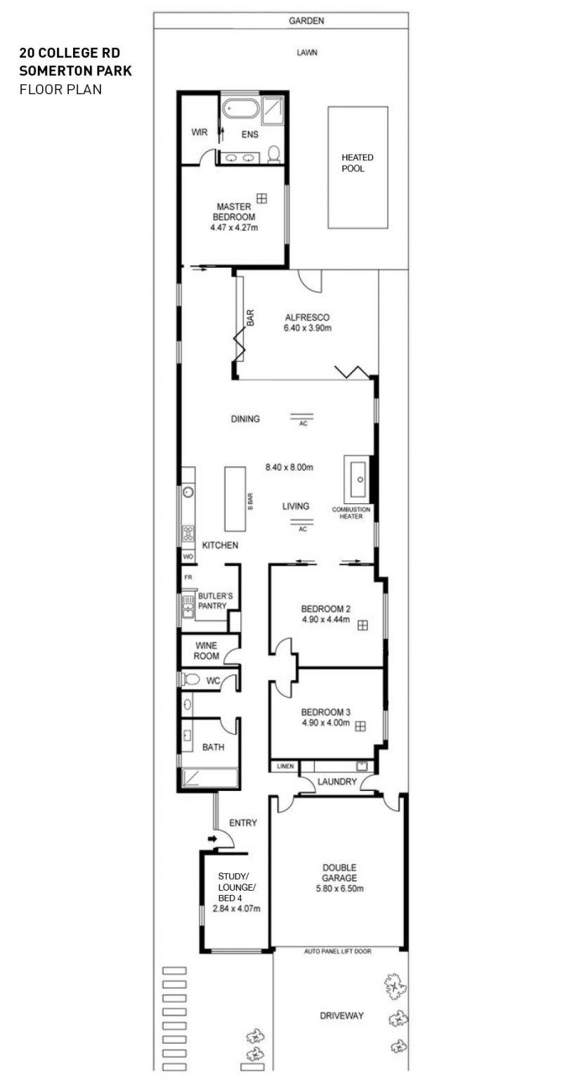 Features include: 3 metre ceilings, spacious open plan kitchen, living and dining area, opening up to light-filled, north-facing large alfresco area, overlooking a 5.5m heated pool.