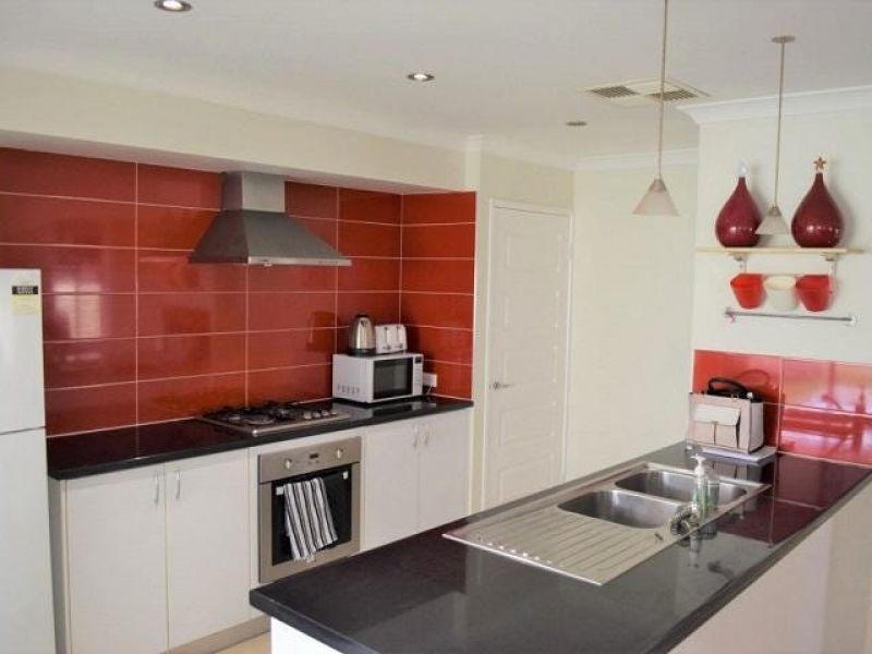 - The well-appointed kitchen has stainless steel appliances, stunning stone bench tops and a feature tiled splash-back