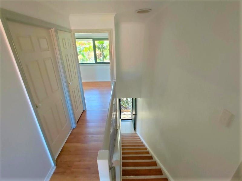 This spacious townhouse has 2 living areas either side of the kitchen and lots of windows and glass sliding doors for a cool and well lit home. The windows and doors face North and South so the house gets the sea breezes and has lots of natural light. The downstairs doors have awnings shielding them from the weather.