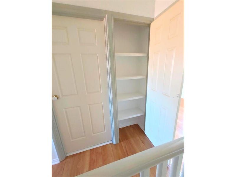 Upstairs has 3 double bedrooms all with built-in closets and 2 other built-in cupboards for linen etc. in the hall. The entire unit has been recently painted and all upstairs except the bathroom has a new laminated floating floor as do the stairs. The large bathroom has a bath/shower combo, a vanity, and a toilet.