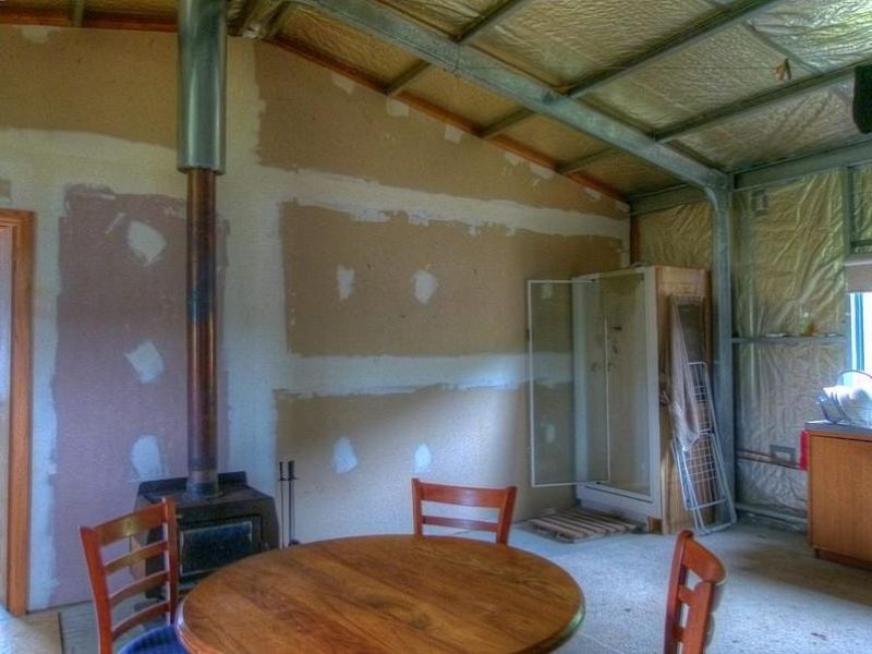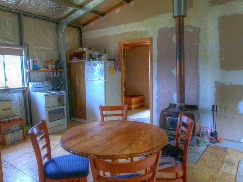 The Stratco Homesteads Colorbond shed, 12.3 metres long by 7 metres wide, is divided into two rooms, and can be used as a temporary dwelling subject to council approval. Plans to upgrade this to a comfortable 2-3 bedroom dwelling have commenced, with the onsite wastewater management system design complete, or it is ideal to provide short term accommodation while you build. The shed has two roller doors, one access door, windows all round to provide plenty of sunlight, and a wood heater that will keep you warm all year. Power has been connected, and 11,500 and 14,500 litre rain water tanks have been installed.