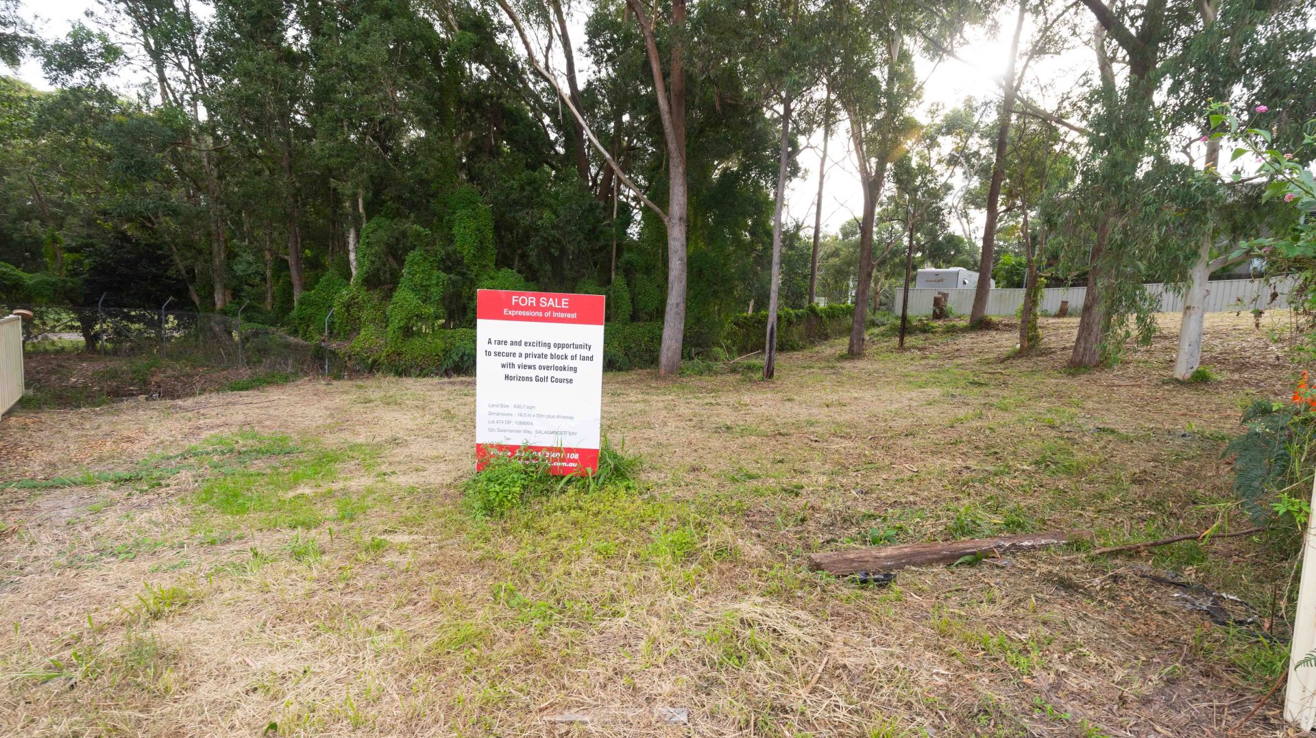 The Land borders and overlooks Horizons Golf Course. The dimensions are 33 metres on the golf course boundary and 29.5 metres on the opposite boundary with a depth of 16.5 metres.