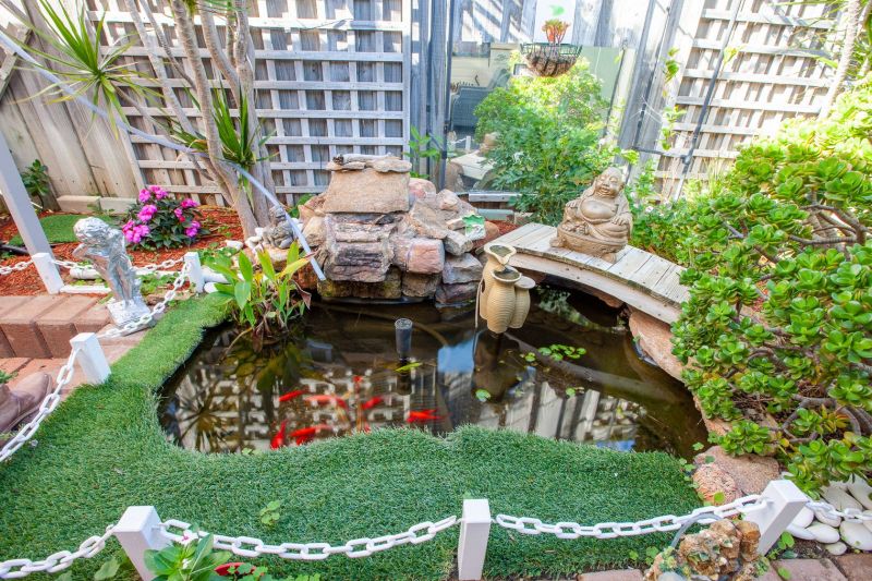 Rear garden with fishpond etc