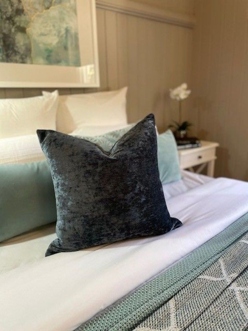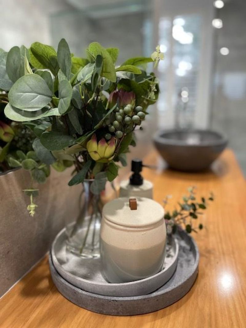 - Two full bathrooms both with bathtubs and rainwater shower heads. Powder room for guests