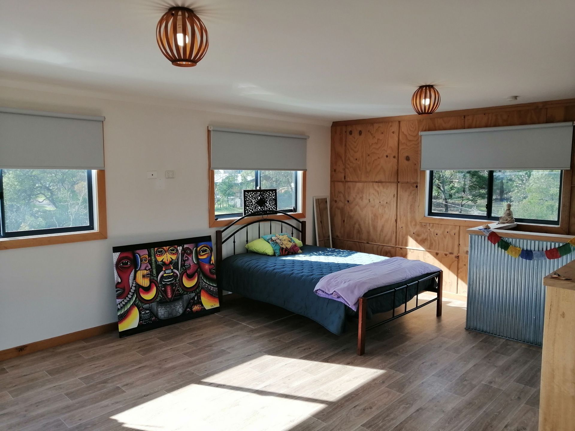 Upstairs - large open bedroom with access to balcony taking in views over ranges.