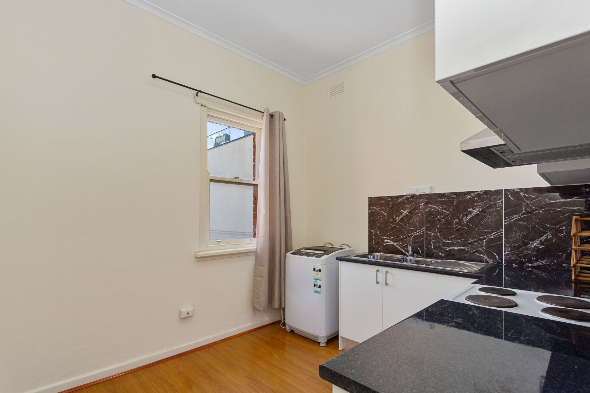 Large front lounge room/bedroom overlooking Station Street with split system heating/cooling * Main bedroom with split system heating/cooling and natural light * Kitchen fitted with oven & gas top, stainless steel range hood with modern cabinetry and feature splash-back * Bathroom with shower/bath and toilet * LED light throughout.