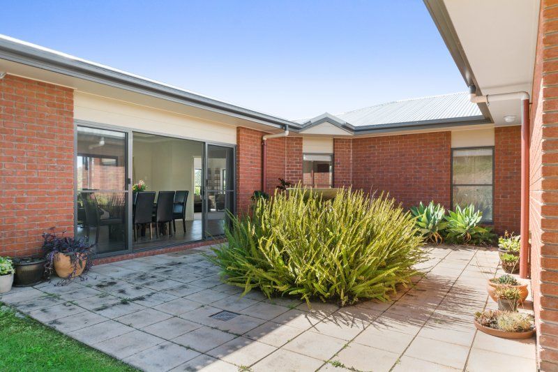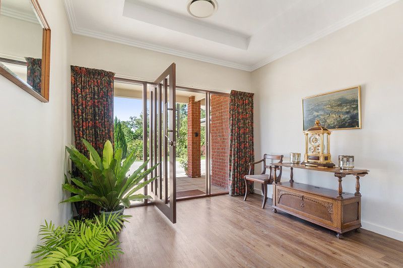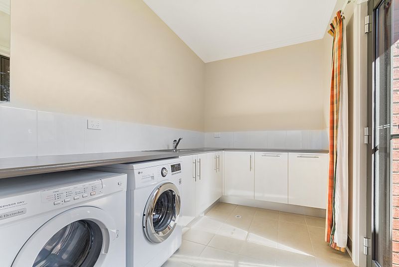 A generously sized laundry, complete with storage facilities, opens onto a secluded courtyard. The house is graced with 9-foot ceilings, accentuated by coffered ceilings that enhance the overall elegance of this superb residence. Enjoy the convenience of town water, an elevated position with well-established, low-maintenance gardens, and a private alfresco entertaining area.