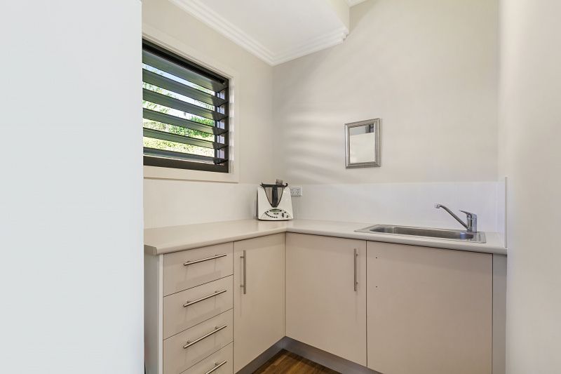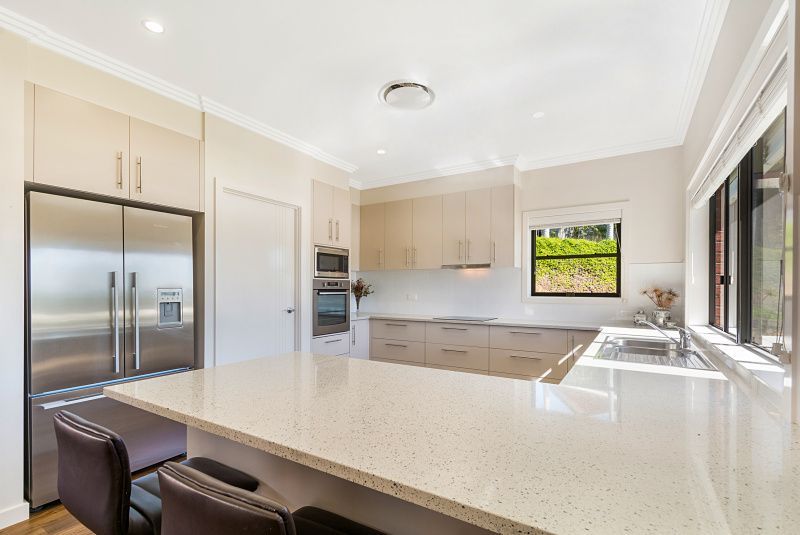 Featuring five bedrooms, each equipped with built-in wardrobes, ceiling fans, and comprehensive ducted air conditioning throughout, the interior is designed for optimal comfort. The two main bedrooms boast ensuite bathrooms, complemented by an additional family bathroom, all adorned with floor-to-ceiling tiles. The kitchen, a haven for culinary enthusiasts, is equipped with quality appliances and a spacious Butler's Pantry, along with a dedicated built-in bar. Window coverings throughout the home will be included in the sale.