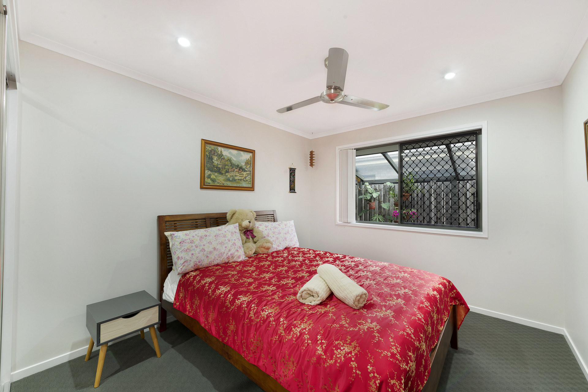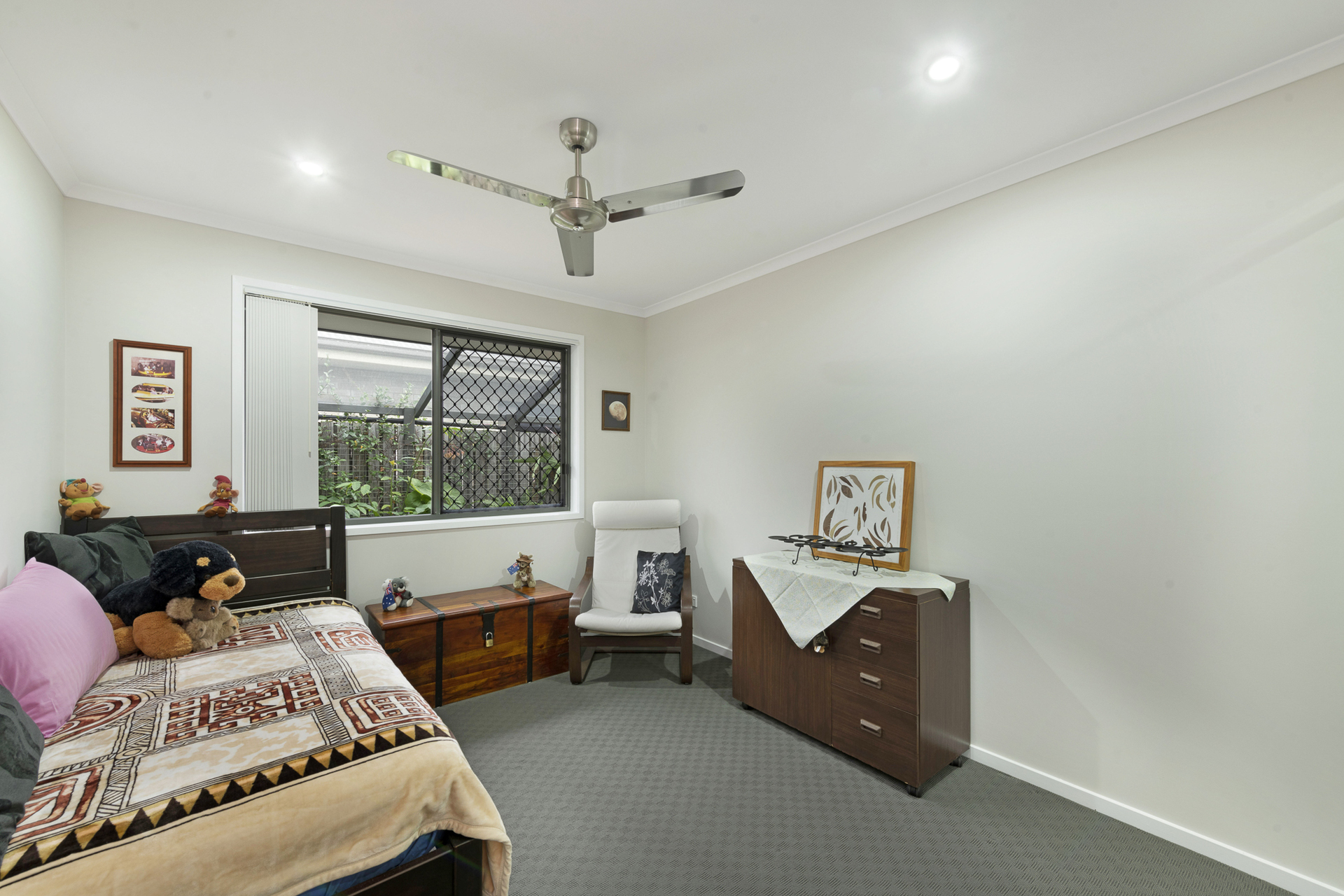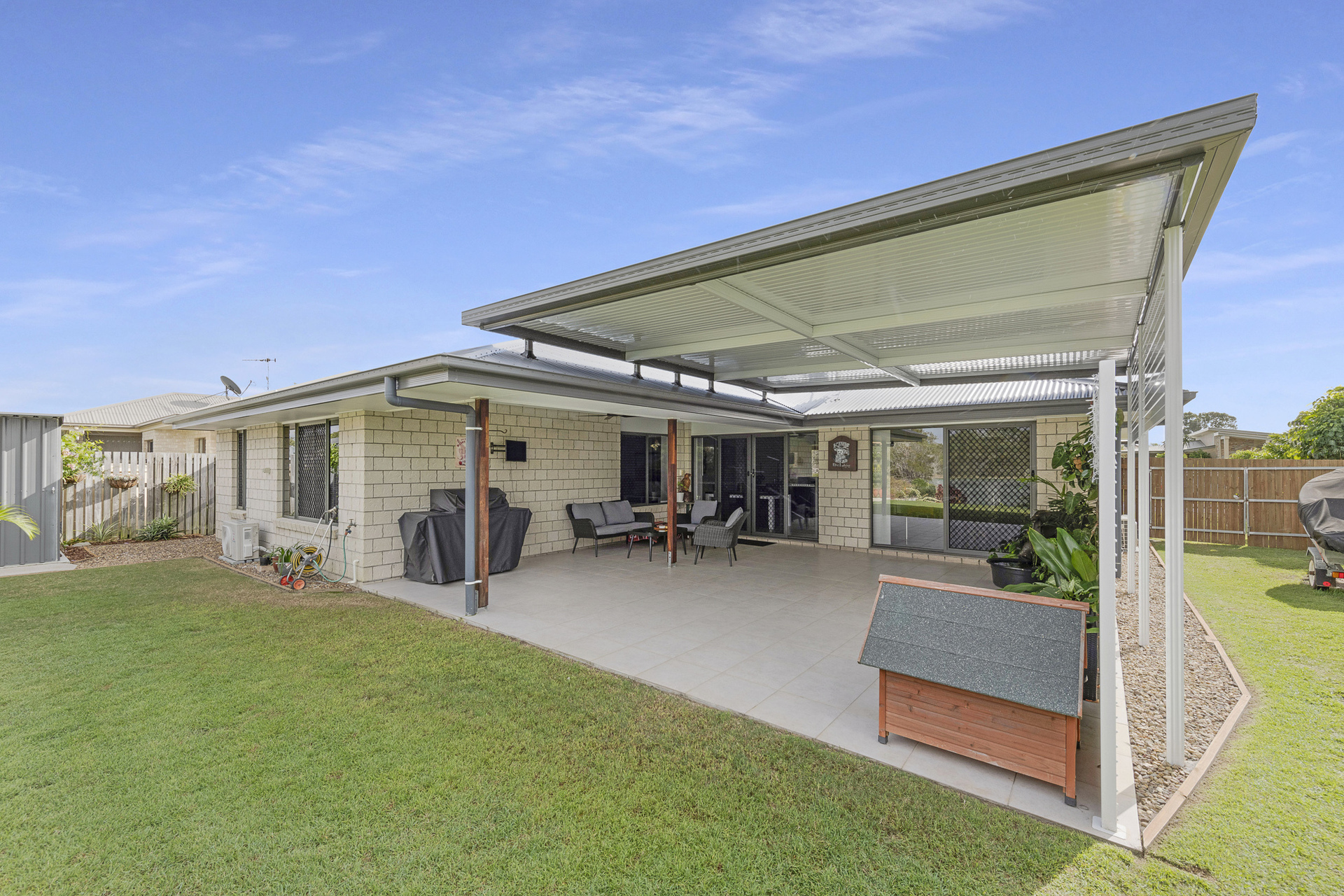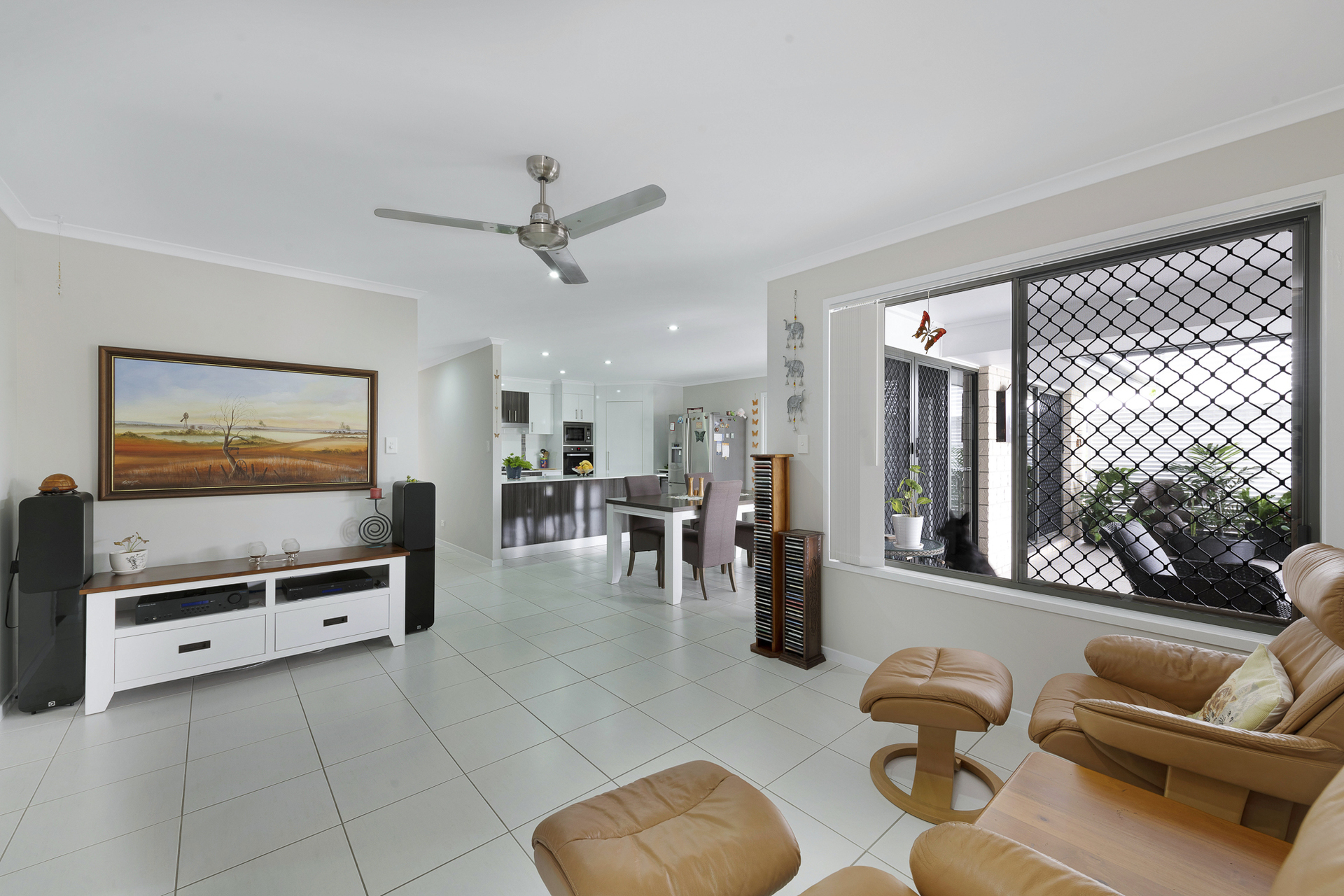 Quality 4 bedroom brick home, generous carpeted bedrooms, master bedroom with air-cond and ceiling fan with ensuite and walk-in robe, other 3 bedrooms with built-in mirrored robes and ceiling fans. Lounge carpeted with air-cond and ceiling fan. Open plan fully tiled dining and family room.