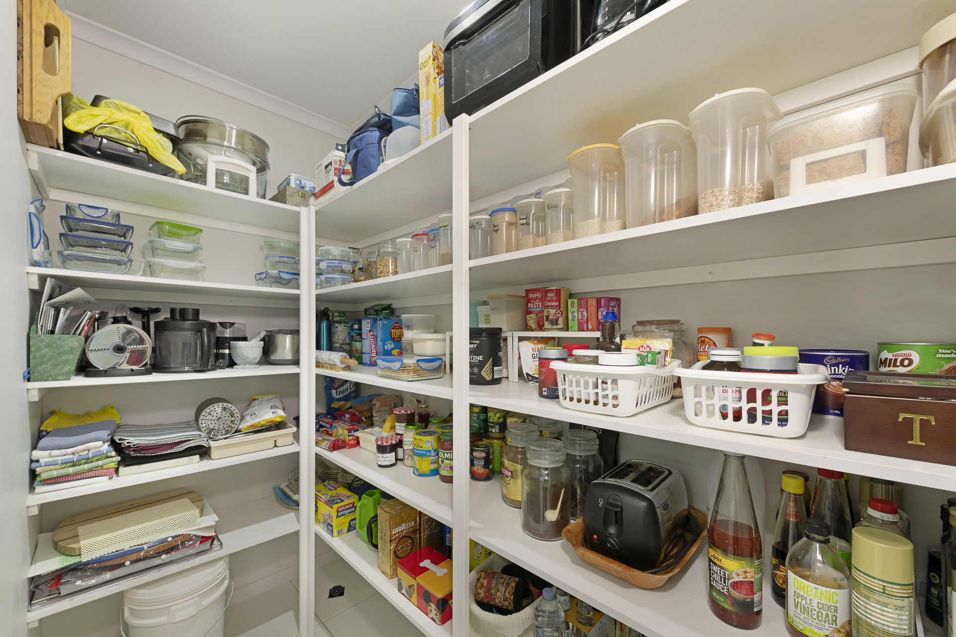 Kitchen has quality stone bench tops, gas cooktop with electric oven, pot drawers, filtered water tap, plus a huge walk-in pantry.