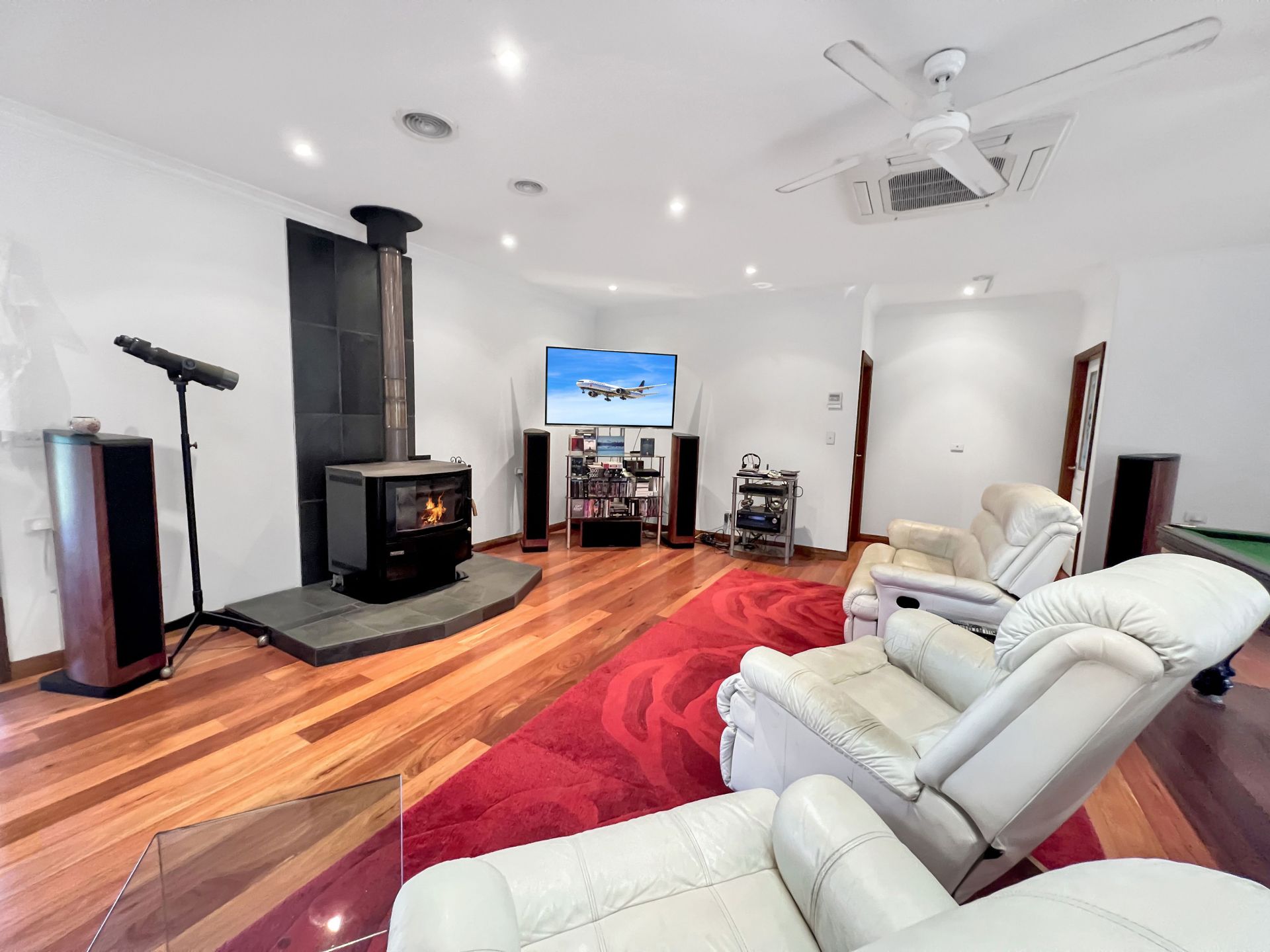 A LARGE open plan Dinning room / Kitchen / TV - Lounge room and a 10ft slate pool table area, plus another bedroom / craft room / storage room as well all upstairs