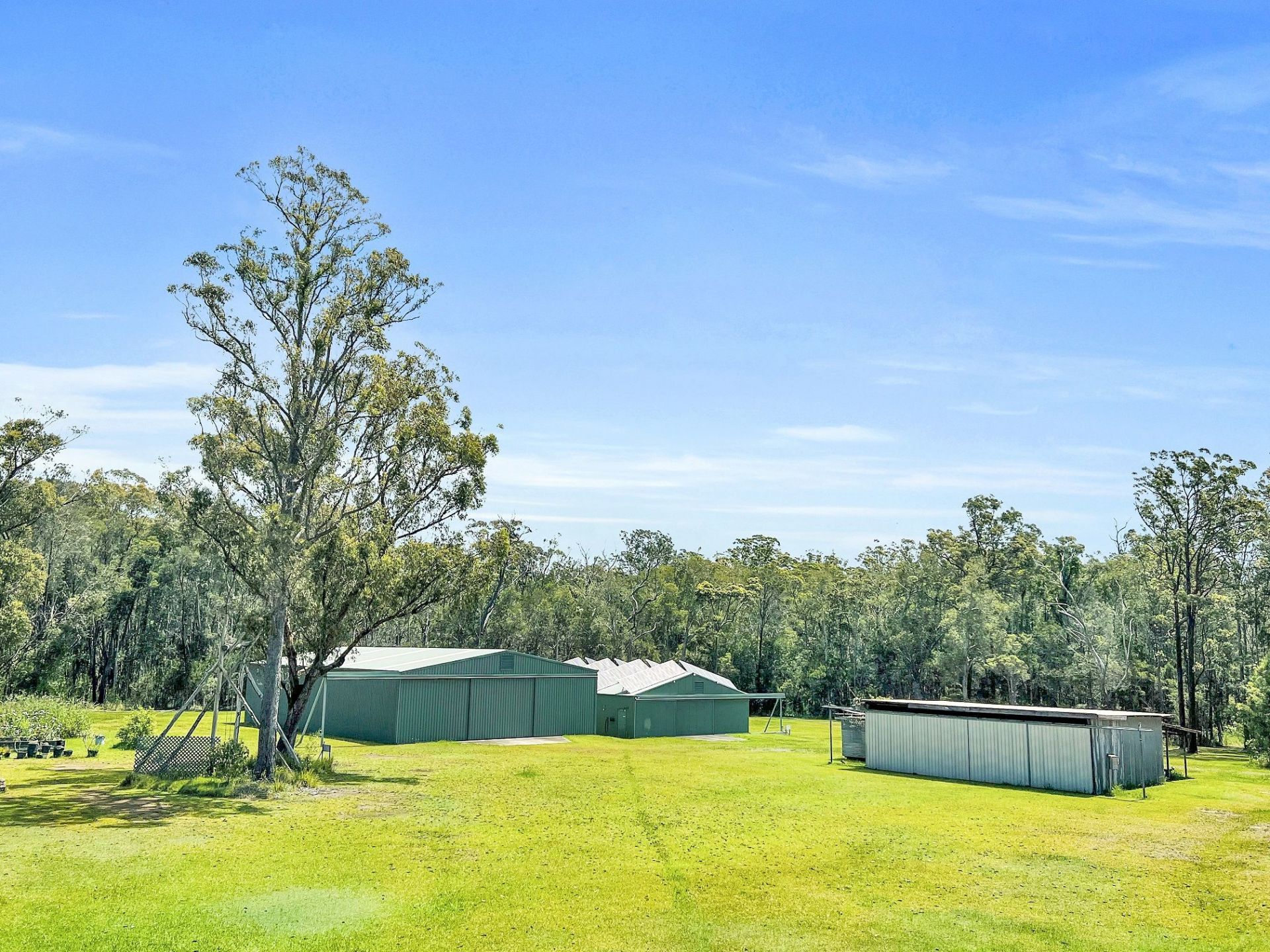 Three Aircraft hangars / HUGE sheds - 2 are modern steel hangars with massive opening doors and the third is an older styled wooden hangar with sliding doors also ... ( room for multiple aircraft - including a few large twin engine aircraft if need be )