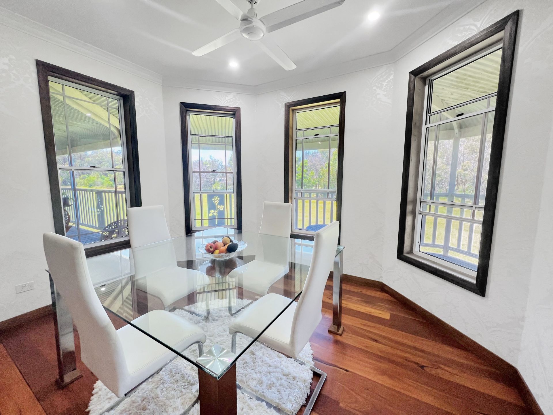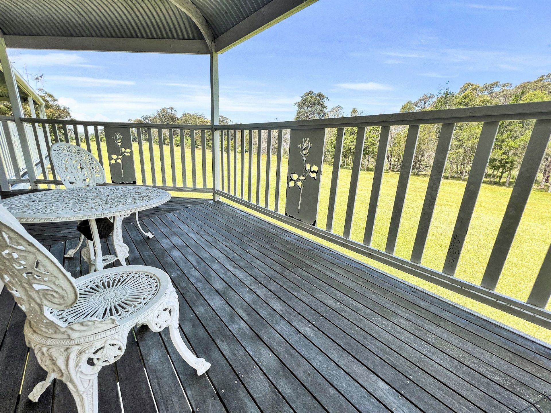 A Huge 2.1 Mtr wide, continuous wrap around verandah with bullnose roofing throughout .... It doesn't matter if it's hot / sunny, windy, raining / ANYTHING - you just move around to the opposite side to escape what you don't want !
