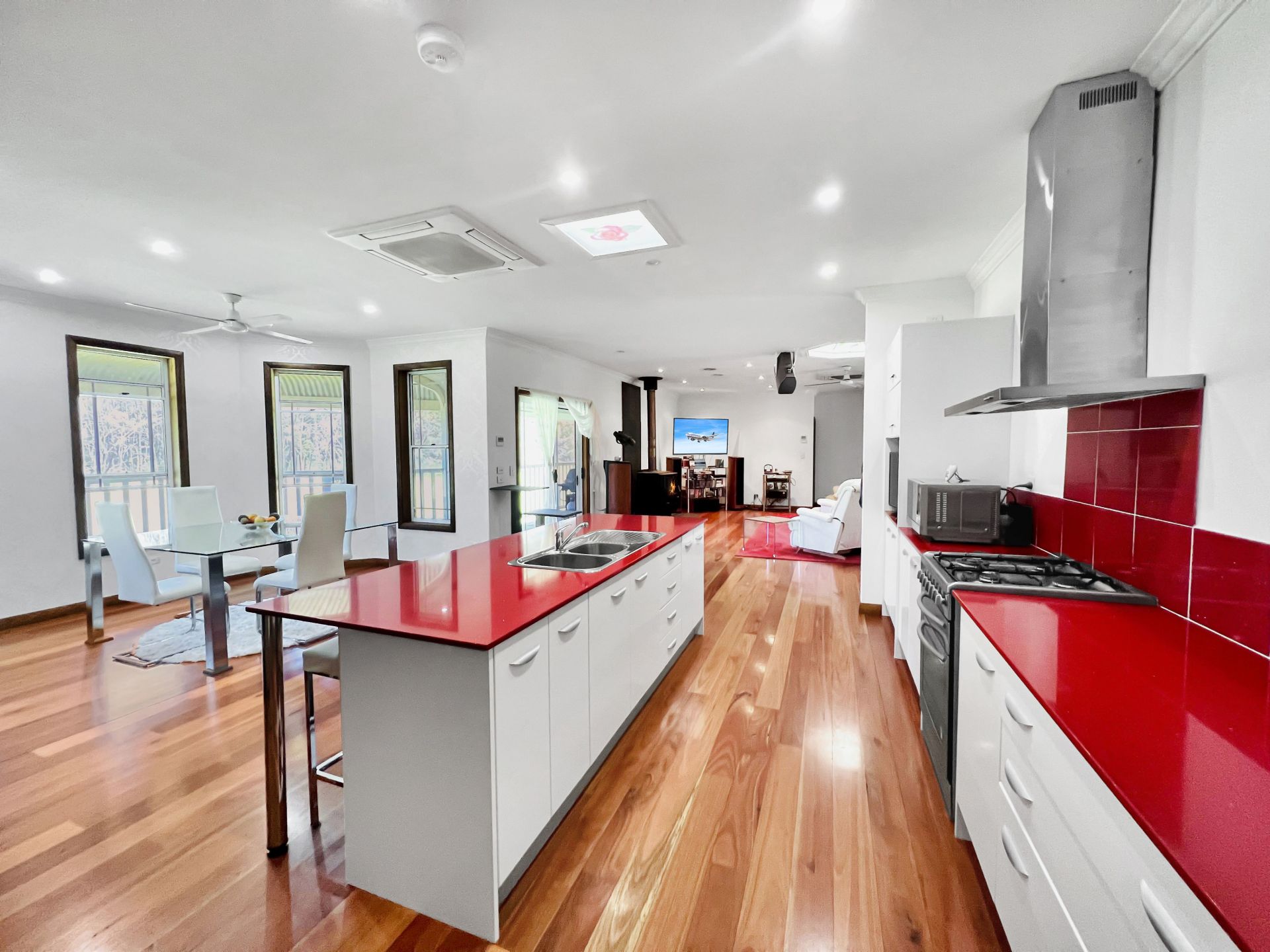40 kW of reverse cycle Air Conditioning with hot air ducting throughout the house upstairs