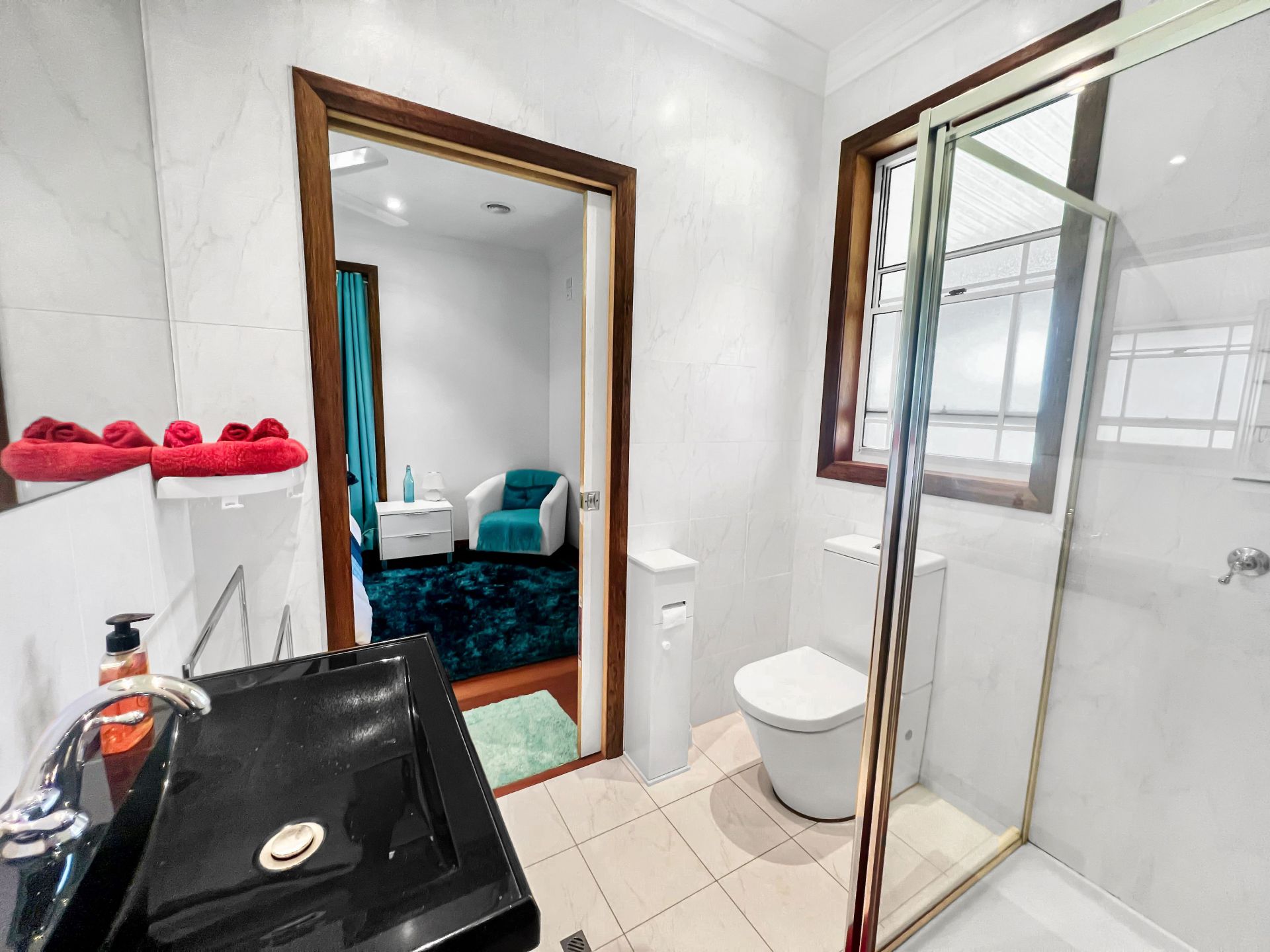 Two large guest rooms at the southern end of the house with a shared ensuite