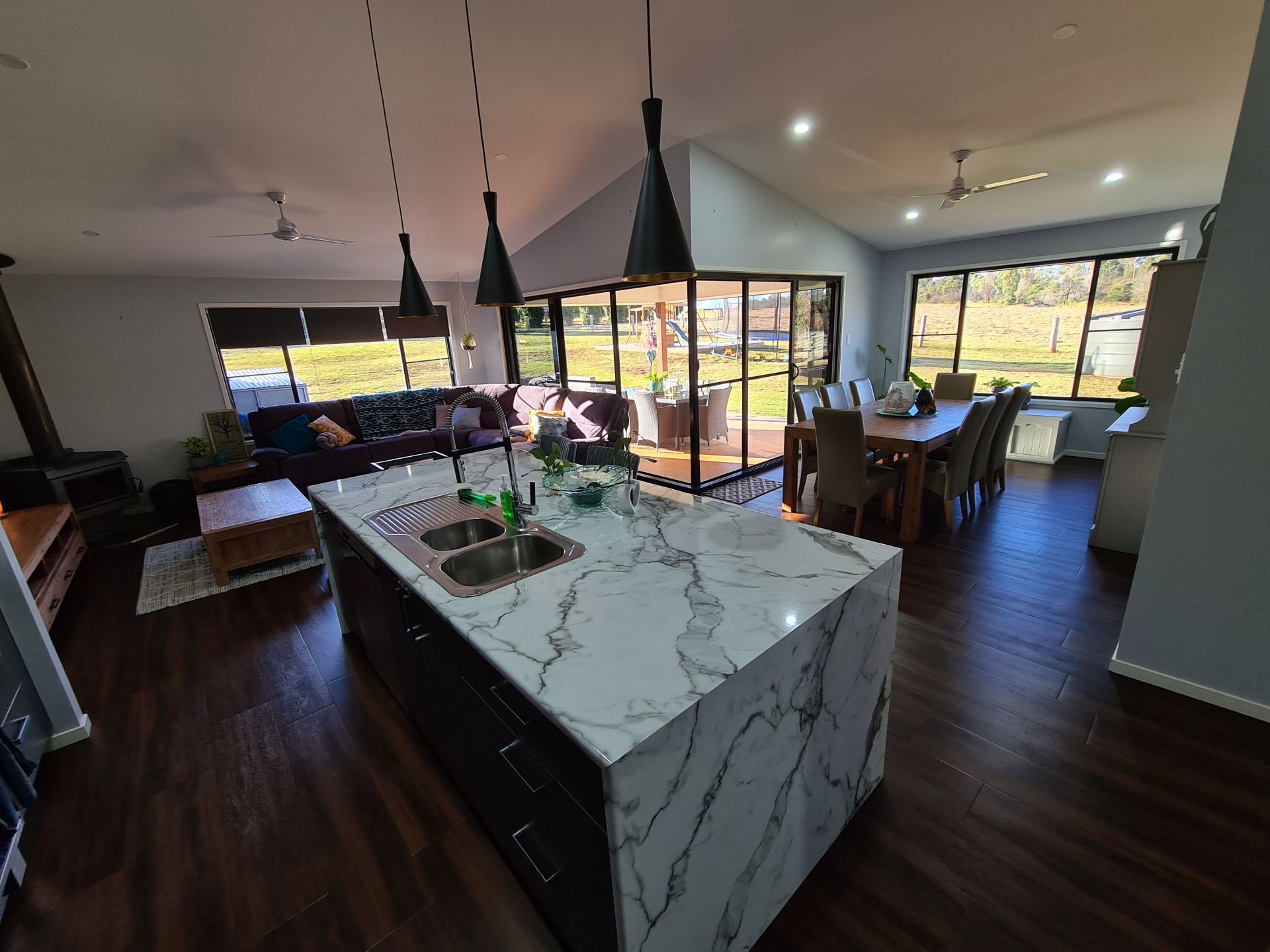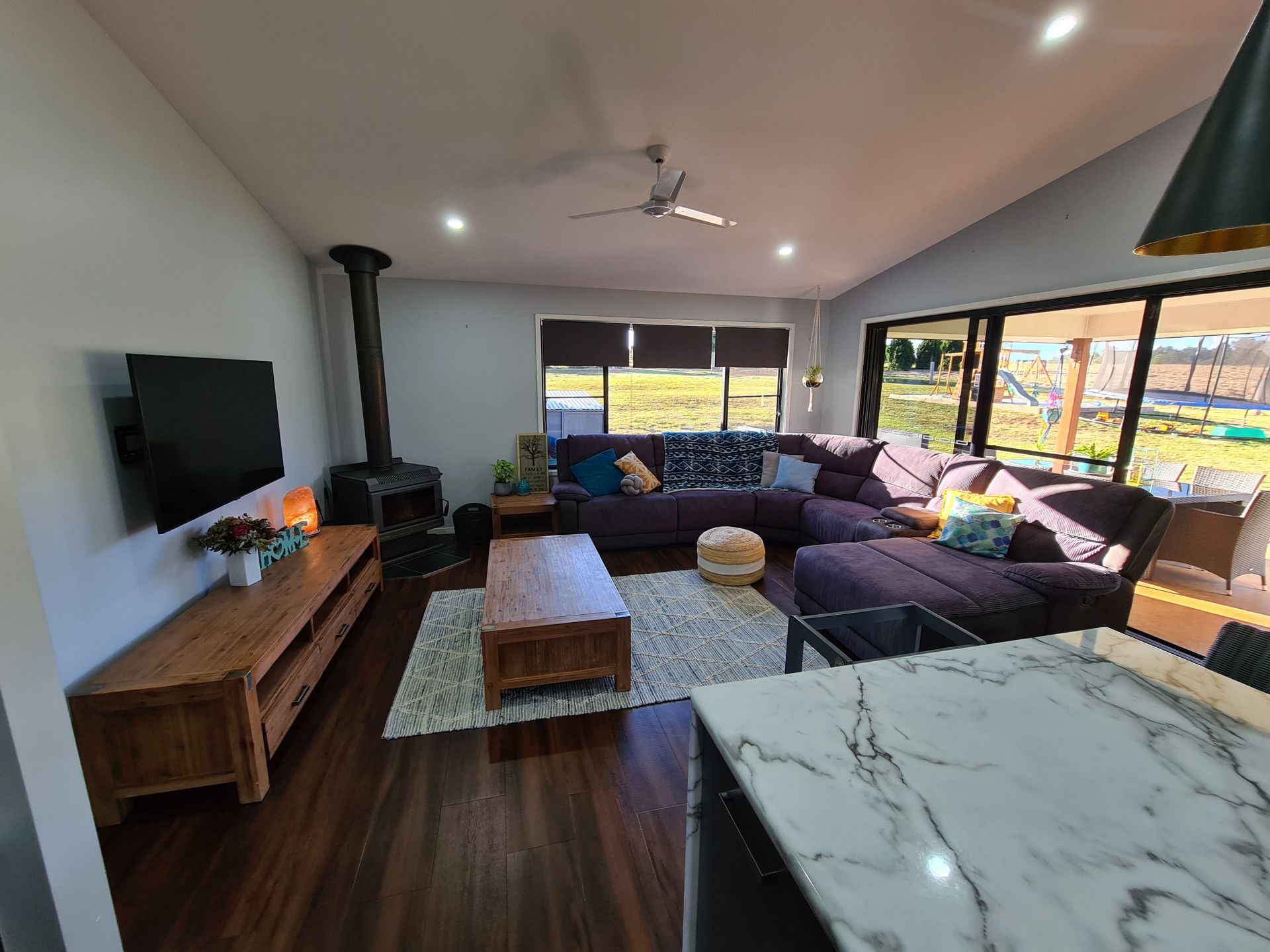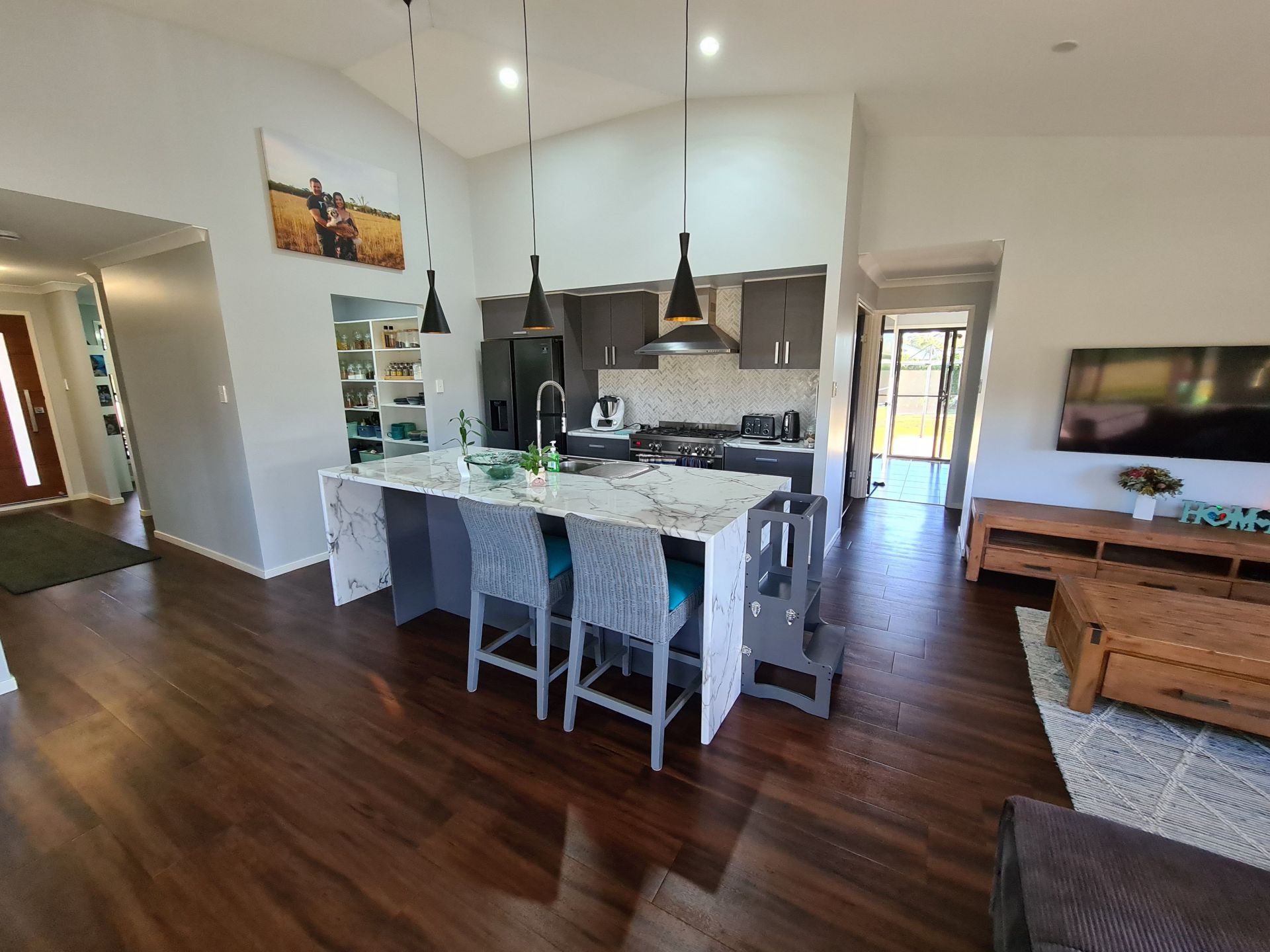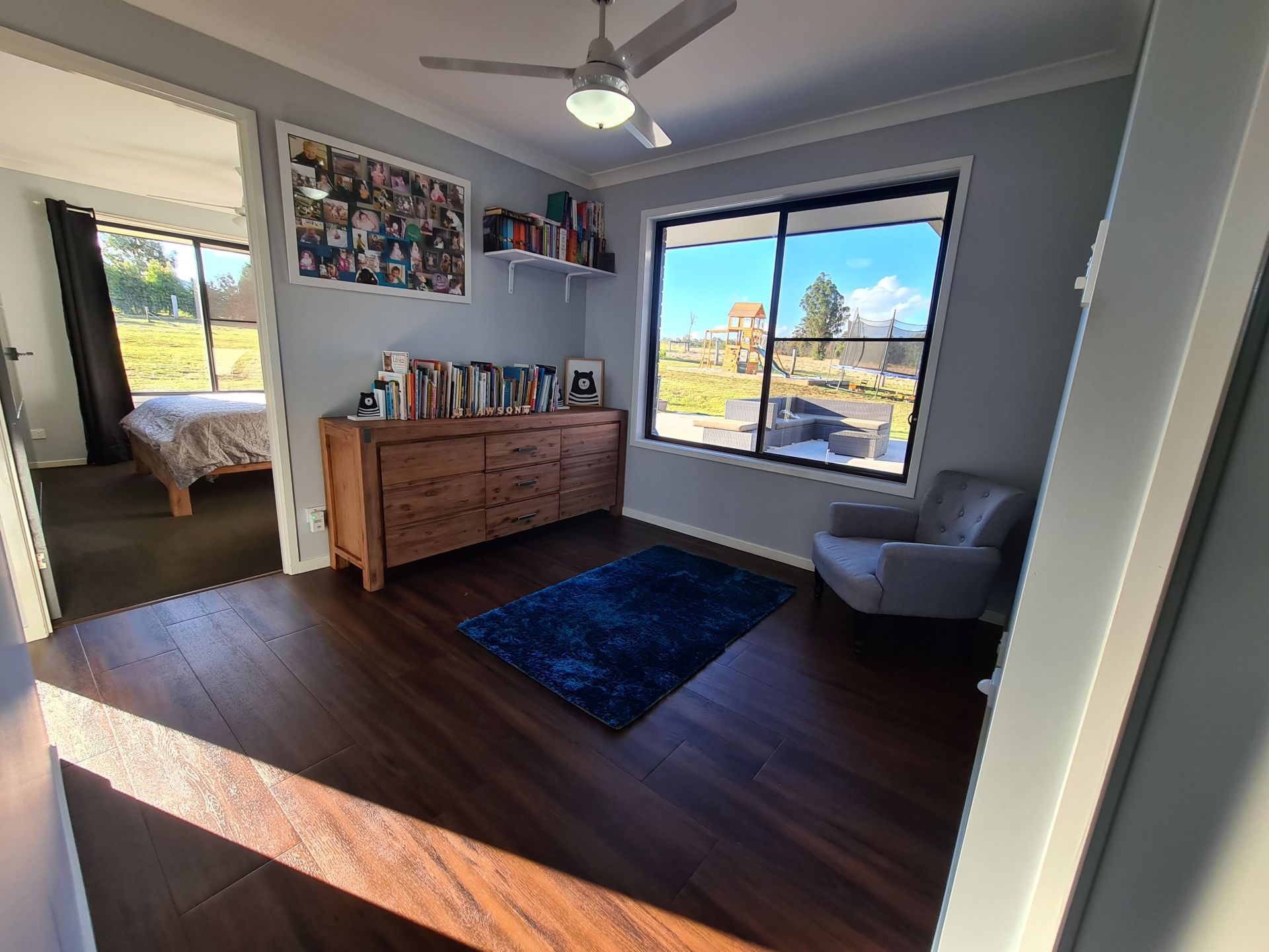 This 4-year-old quality home sitting on a spacious 1 Acre fully fenced property boasts many great features suitable for families and new home buyers alike. You are welcomed with a large open plan living area with spacious kitchen, butler's pantry, wood heater, lounge, and dining areas. In addition to the main living area this property has an air-conditioned media room and another living space perfect for a kid's retreat/playroom. At the front of the property you will find an office and convenient 2 car storage with internal door.