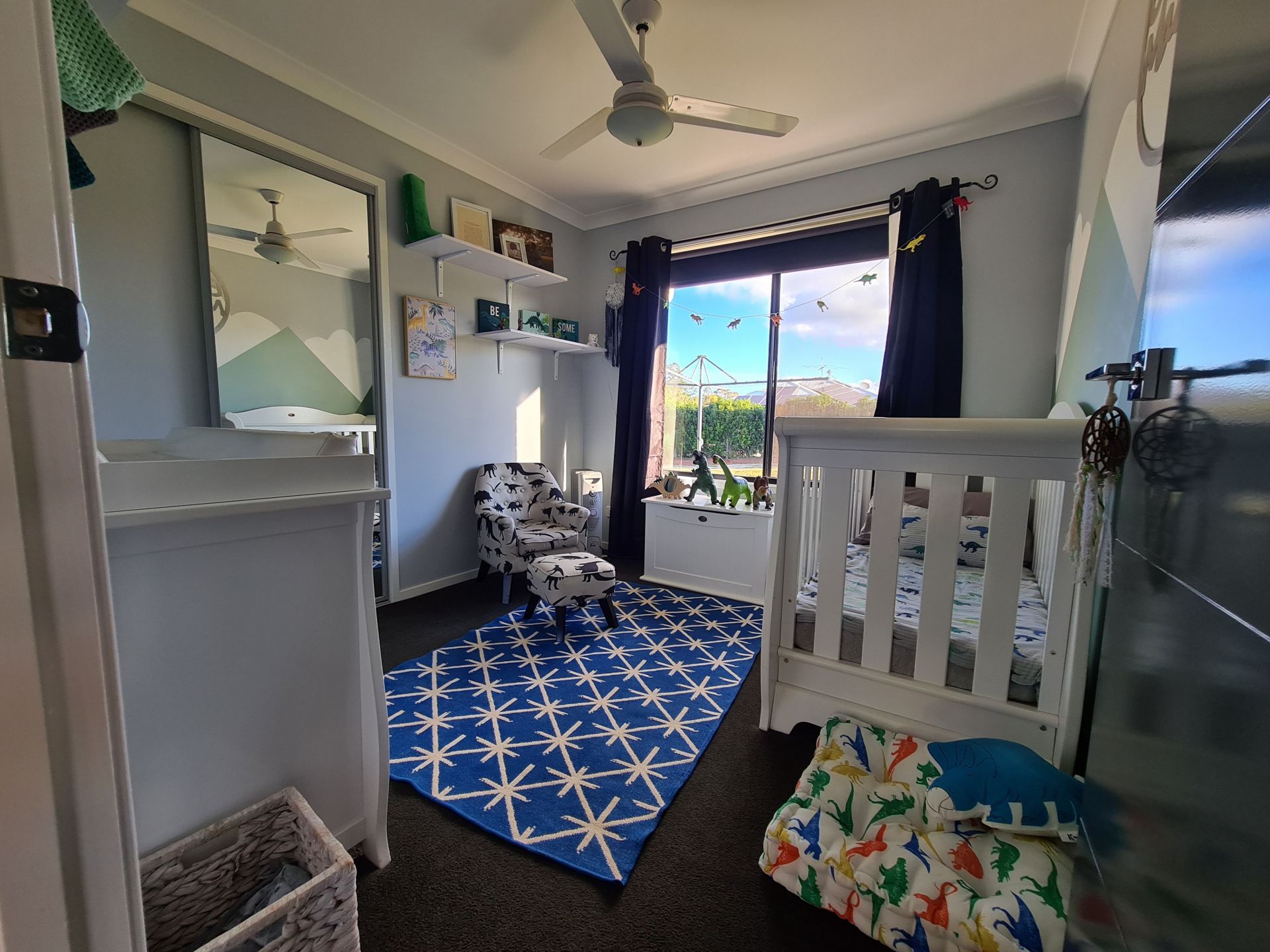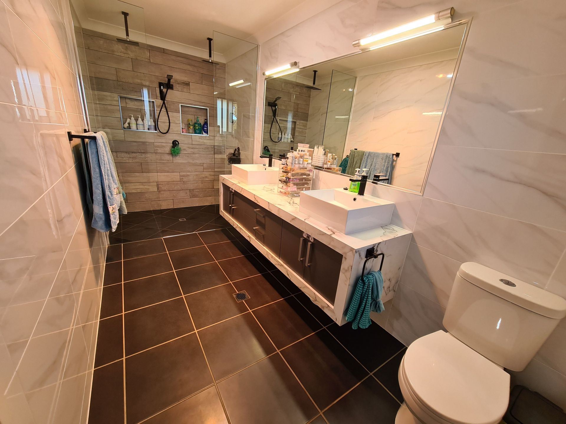 This 4-bedroom home has a large air-conditioned master bedroom with a walk-in robe and ensuite with double vanity and showers. The other 3 bedrooms are well sized, and all have ceiling fans, built in storage and are close to the main bathroom with a shower and bath.