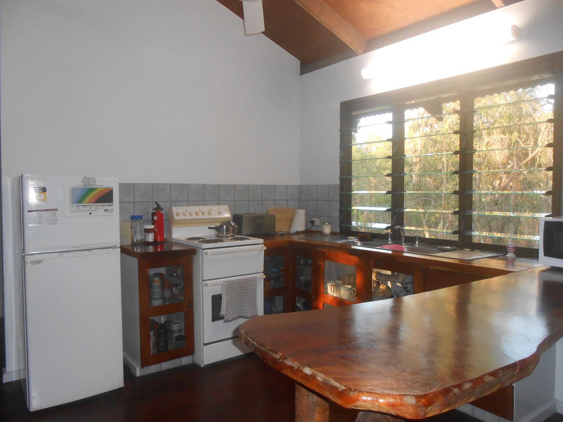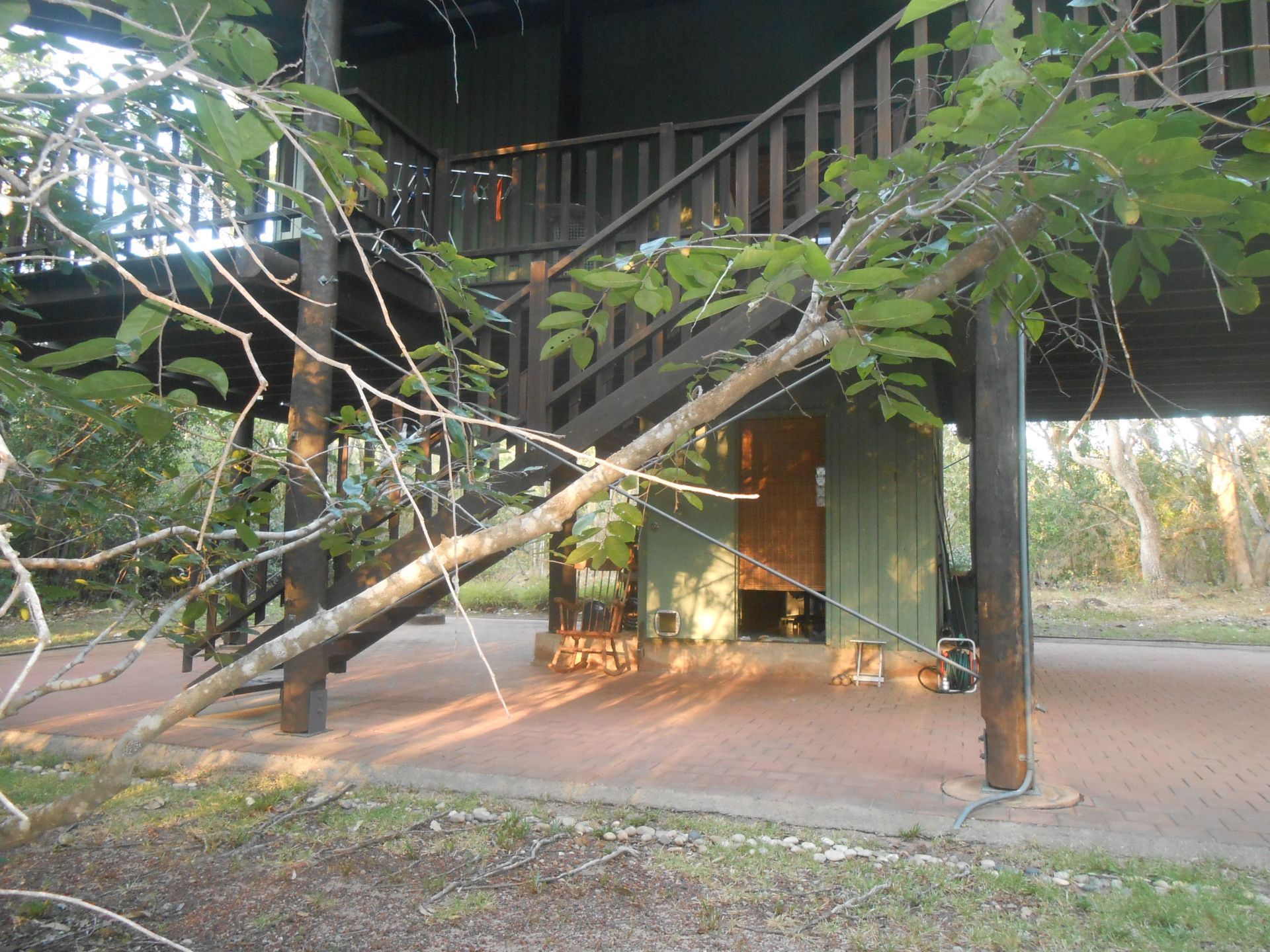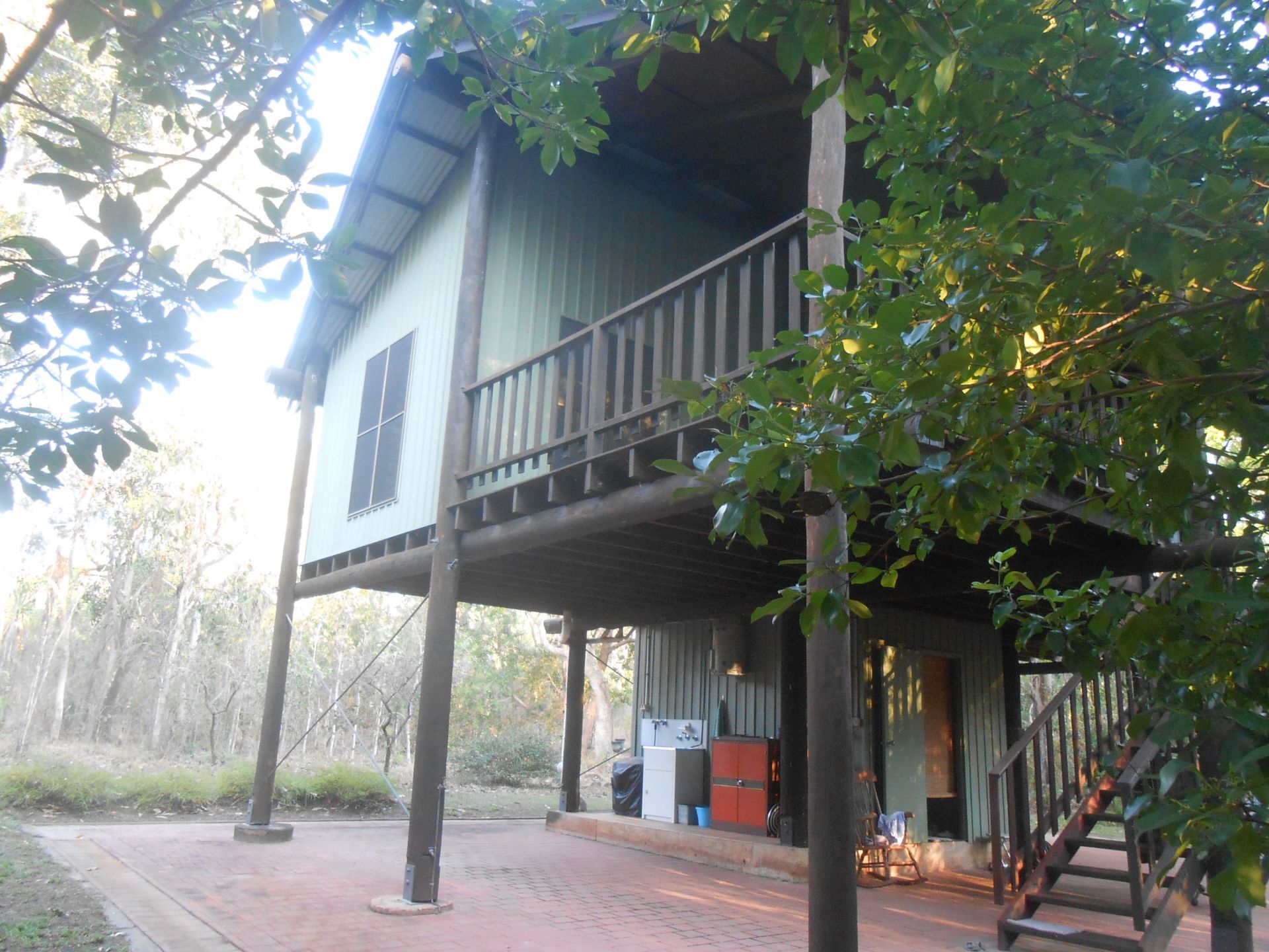 Live in peace and privacy in this elevated pole house on 5 acres. Extensive use of louvres and cathedral ceilings gives this home a spacious airy feel. A SE-NW orientation catches the breezes in both the dry and wet seasons and the large full-length balcony is perfect for watching the sunset or the wet season storms.