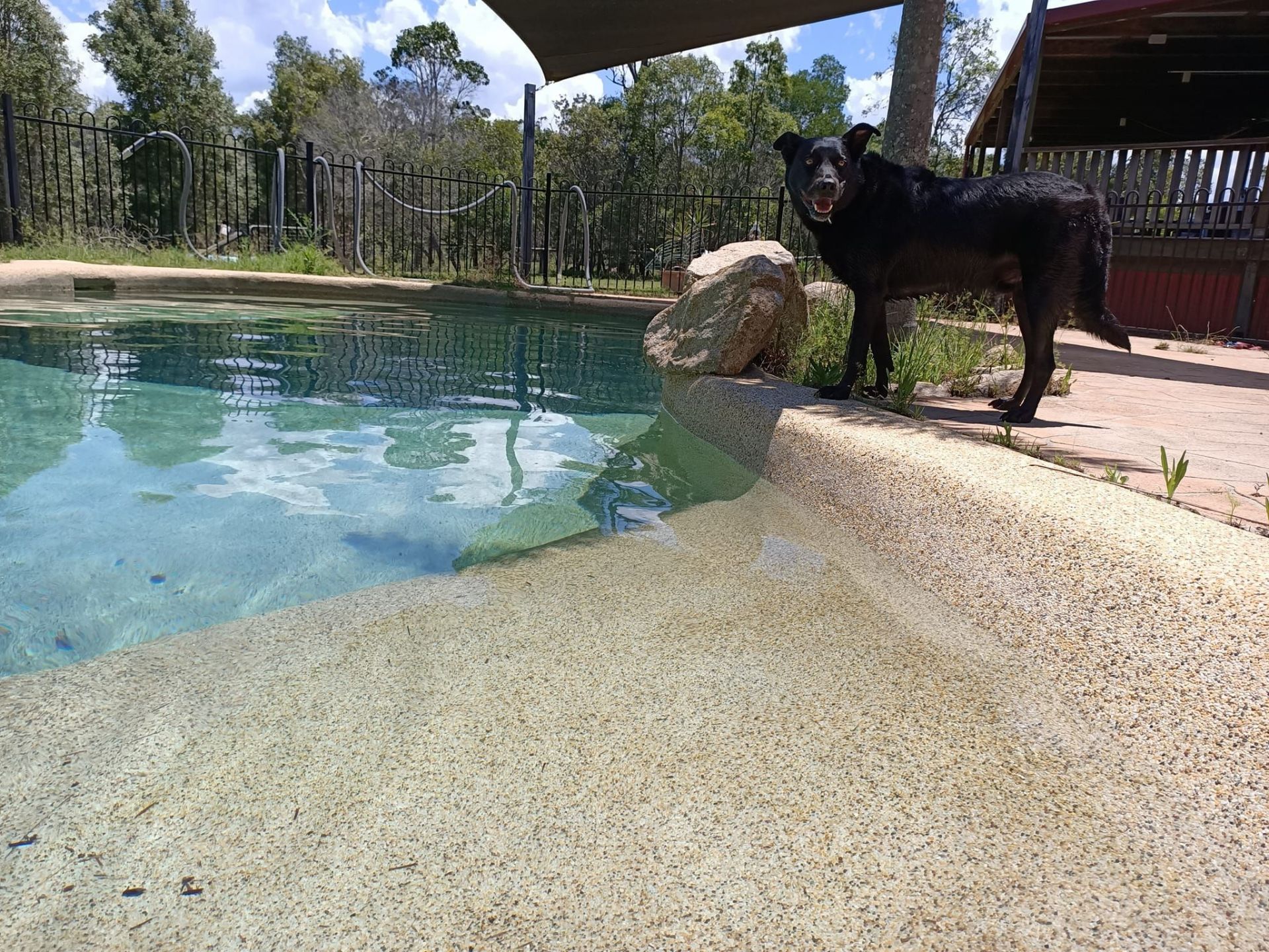 The Veranda also looks out to the swimming pool with spa spouts.in one corner.