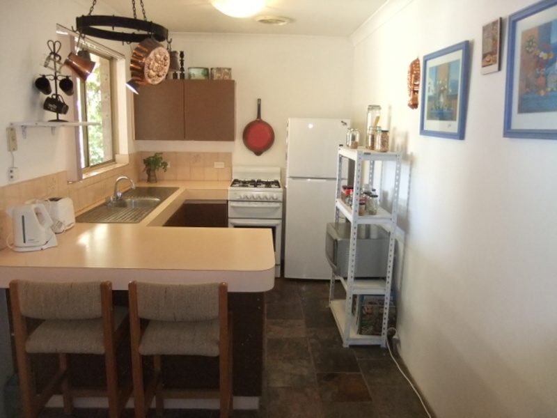 The insulation, slate flooring, and ducted evaporative air-conditioning means the house stays cool in summer, and there's a wood heater or scheme gas connected for winter warmth and the gas oven and stove.