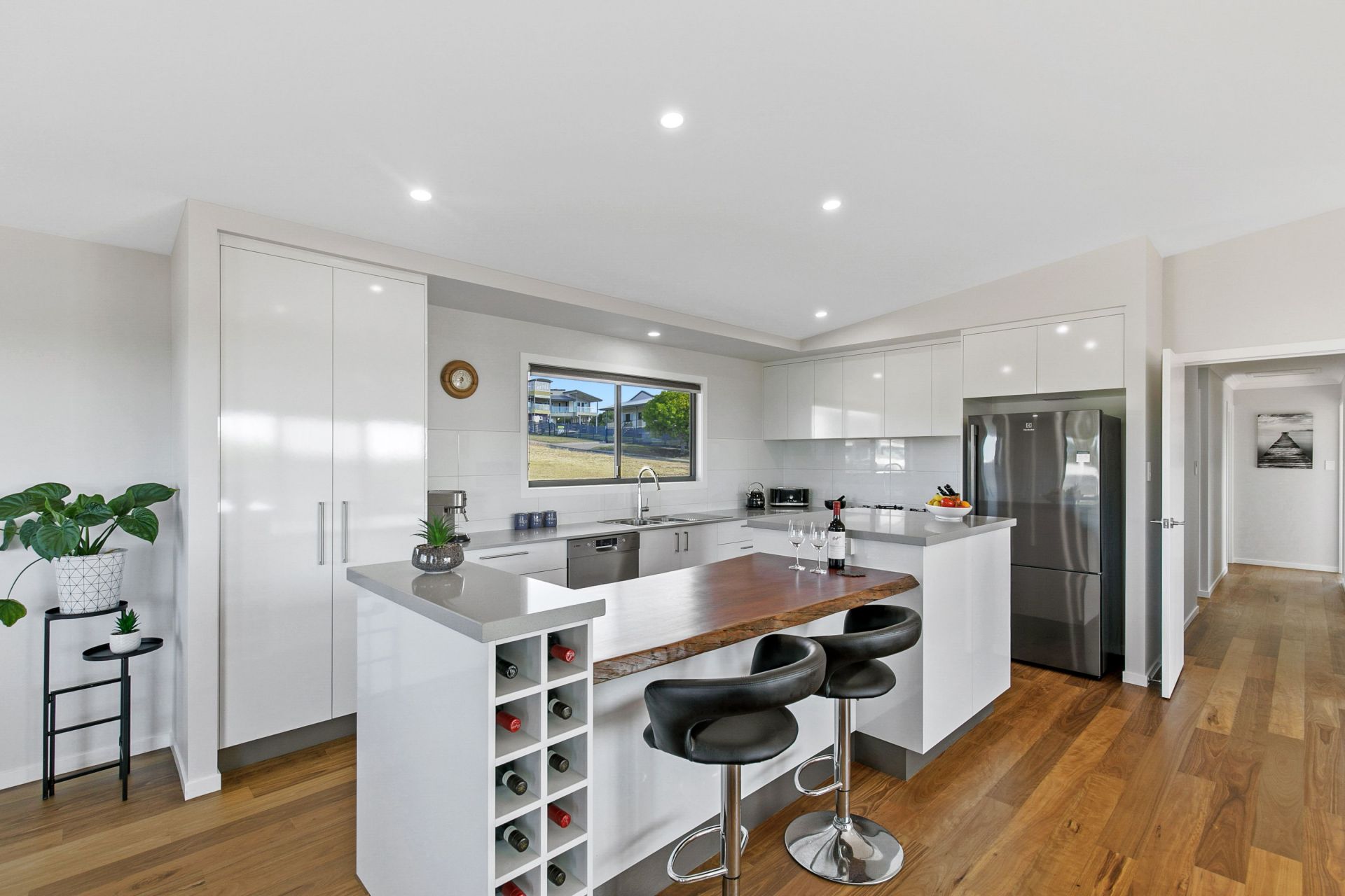 A one-of-a-kind kitchen with feature Redgum Timber Slab benchtop