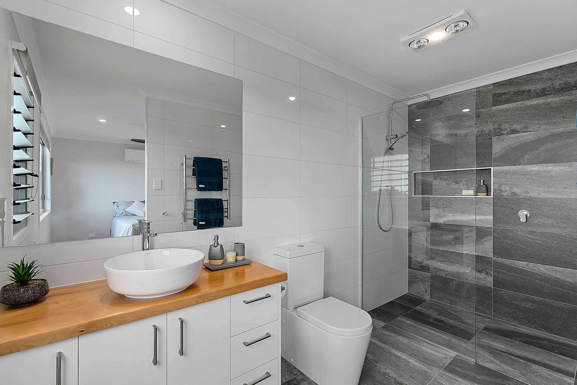 Large ensuite with walk-in shower and heated towel rail