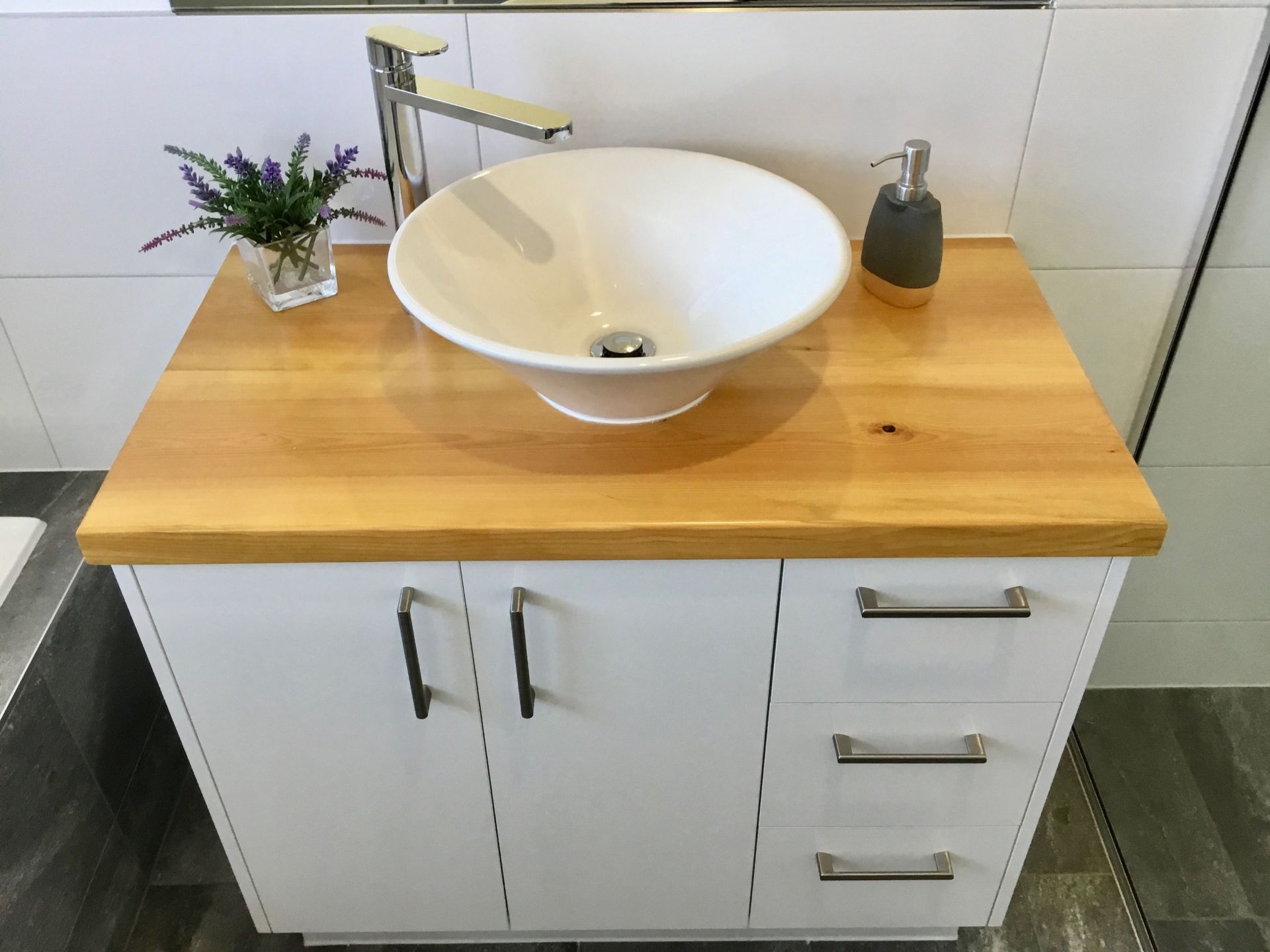 Feature celerytop pine vanity benchtops