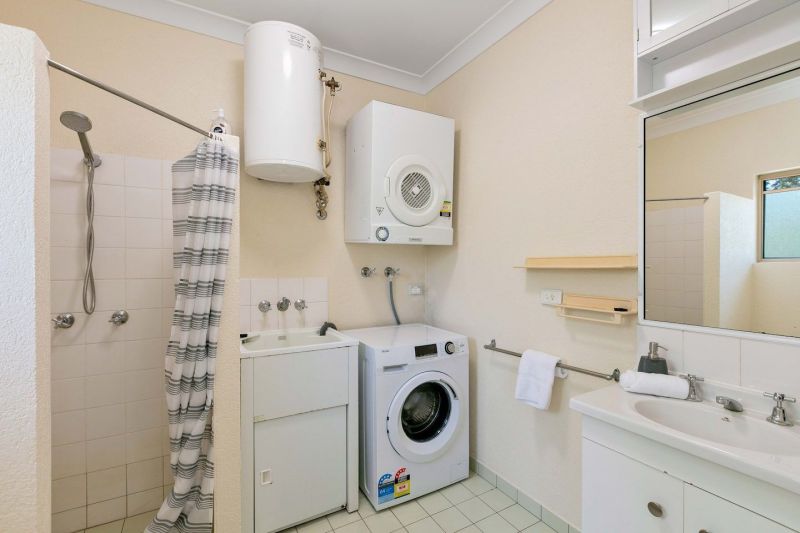 The open plan of the kitchen, living and dining areas overlooks the tiled patio area - the perfect spot for relaxing and entertaining guests. The bedroom is spacious, and the bathroom contains the internal laundry complete with clothes dryer and laundry tub.